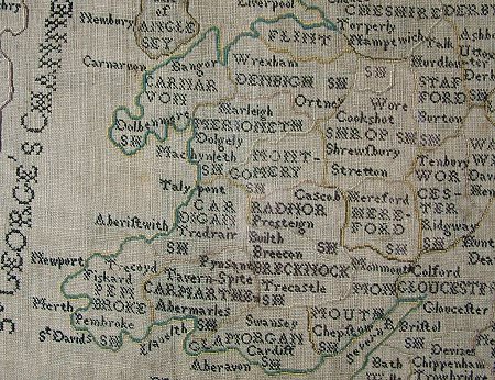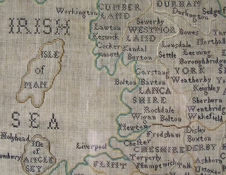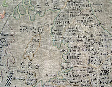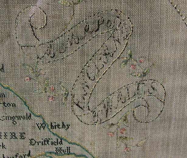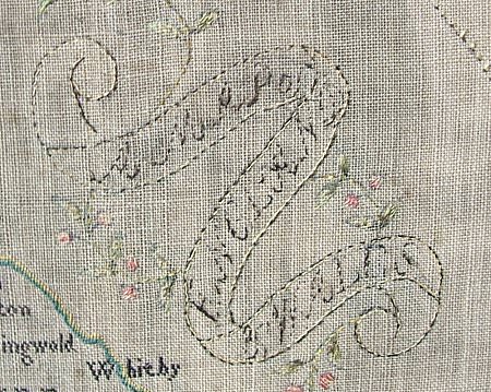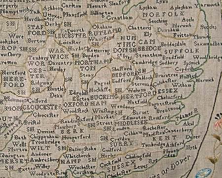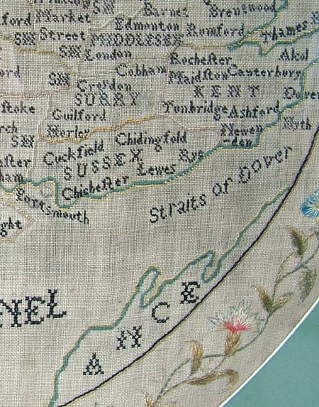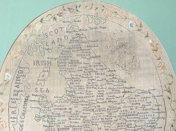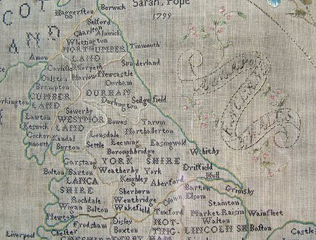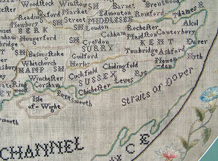 Large 1799 Silkwork Map Sampler by Sarah Pope