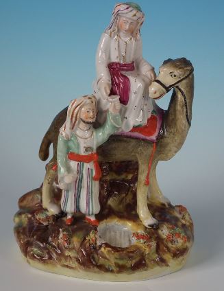 Thus, mounted on a camel and dressed as a male Arab, she had become a suitable subject for a pottery figure.