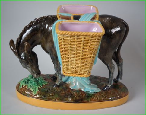 George Jones coloured lead glazes victorian majolica donkey flower holder
