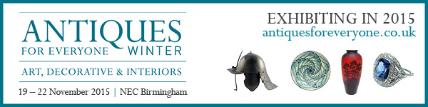 The Antiques for Everyone fair is sure to have something from every era to suit every pocket. If this is your first visit to AFE you will love it. A vetted fair, not too grand, not too vast, right at the centre of the motorway system and with excellent rail and air links. The fair opens at 11am each morning from Thursday 19th through to Sunday 22nd. You will find us on stand L3.