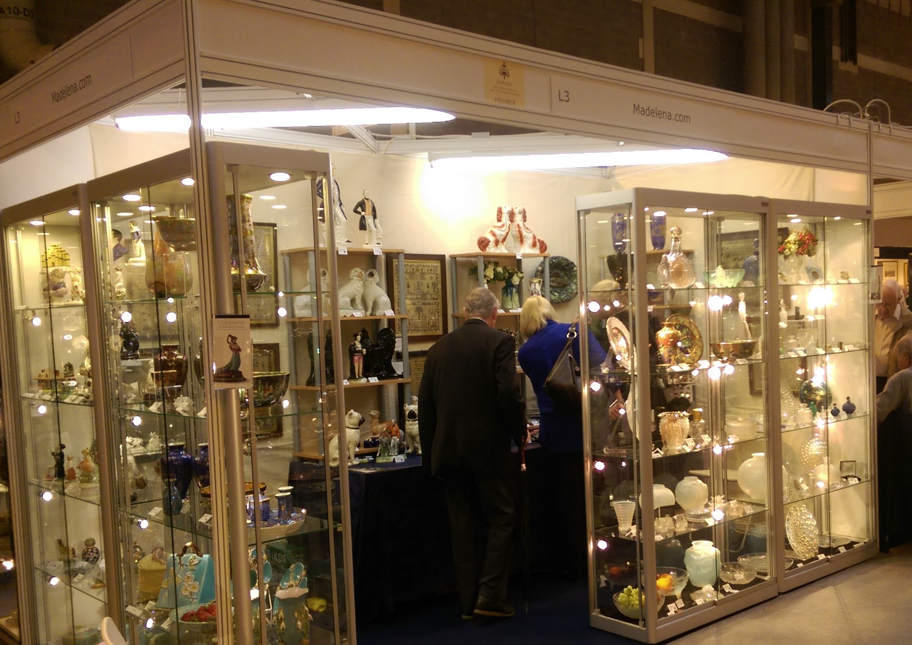 Rene Lalique, Samplers, Majolica, Staffordshire Figures, Wedgwood lustre, WMF, Stand L3 MADELENA.COM