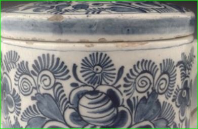 + Tin glaze is normal clear lead glaze with a little tin oxide added to ‘the mix’ –  sand + potash + lead oxide + tin oxide. Tin is the smallest proportion in the mix but produces the wonderful opaque white colour glaze that ‘takes’ brush painted enamel decoration so beautifully.