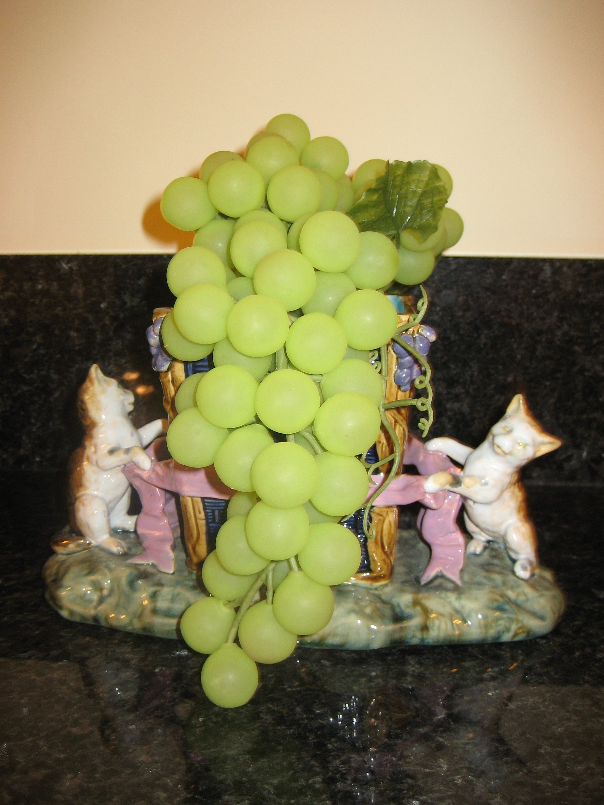 The Victorian passion for nature and the English garden found vibrant expression in majolica pottery, transforming everyday household objects into works of art adorned with lush depictions of flora and fauna. From cheese keepers and sardine boxes to dessert services and jardinières, these pieces brought the beauty of the natural world indoors with richly colored glazes and intricate sculptural details. Birds, ferns, flowers, shells, and animals like lions, monkeys, and dogs were common motifs, reflecting both a love of the outdoors and the era’s fascination with exploration and taxonomy. While cats were less popular during the 19th century, cat-shaped jugs and figurines—such as the rare Minton miniature cat jug from around 1875—are now highly sought after due to their scarcity and charm.