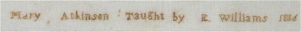 'Mary Atkinson : Taught by E. Williams 1816'.