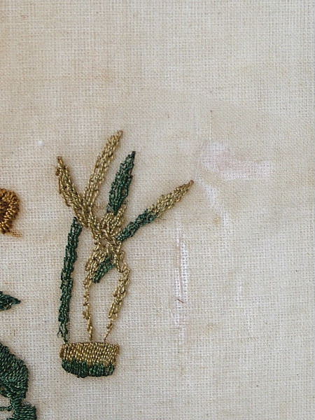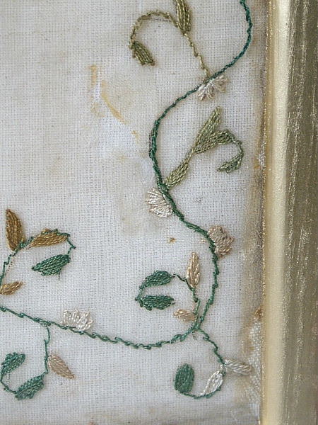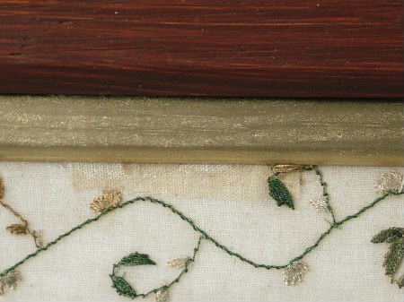 Glued around the edge to linen, and padded with wadding.