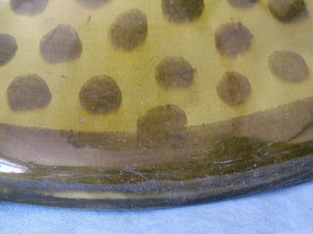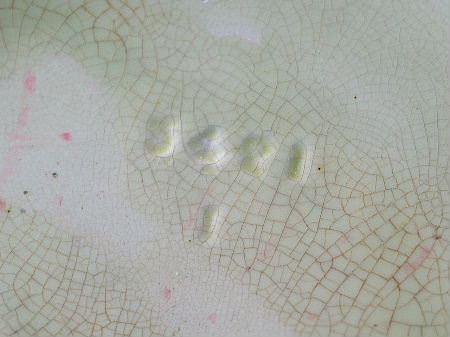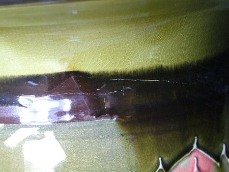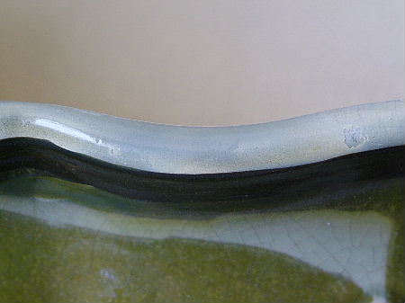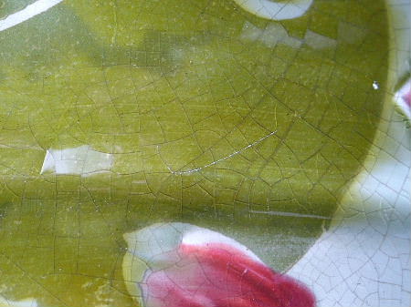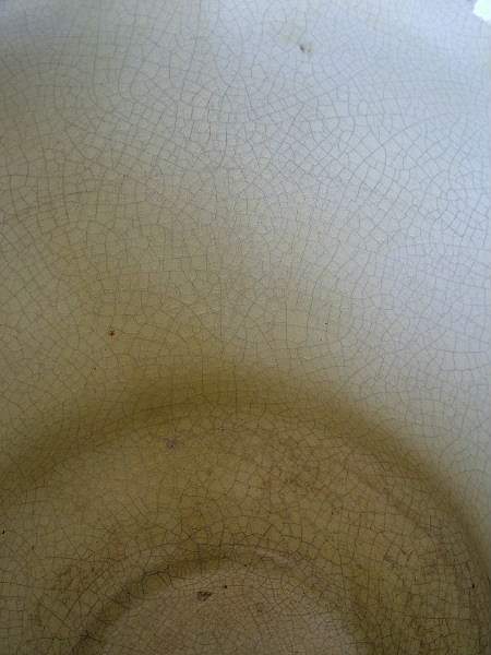 Kiln effects: crazing on both sides, particularly to interior;