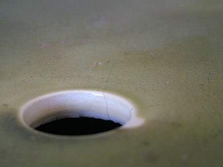 Kiln effects: shrinkage line from drainage hole;