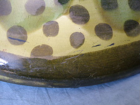Wear to the top, exterior and base.