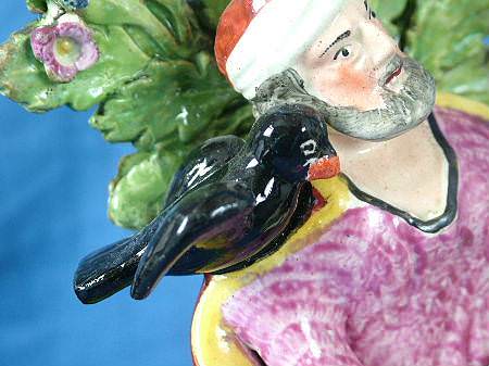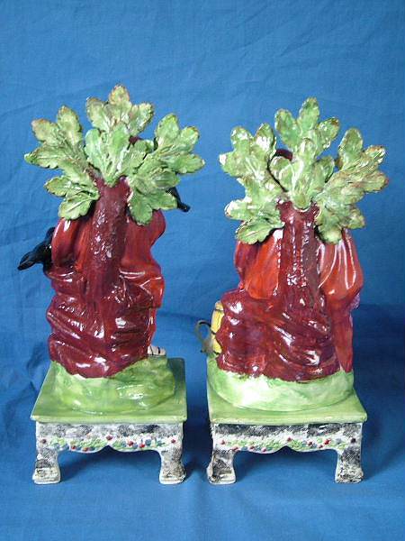 Early pair Staffordshire Sherratt-type table base figures of Elijah and the Widow.