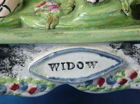 Title 'ELIJAH &' 'WIDOW' on an oval plaque to base front.