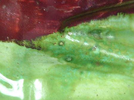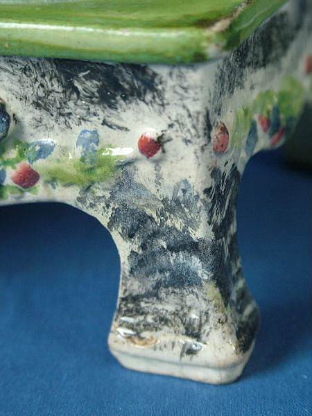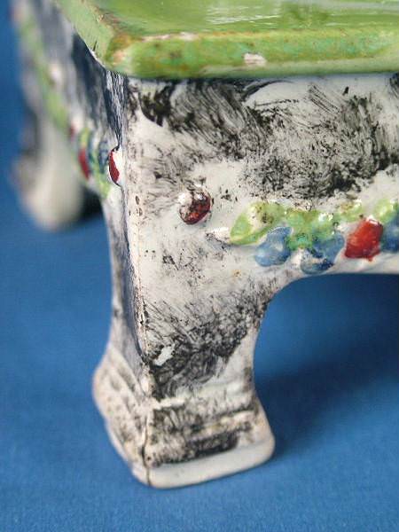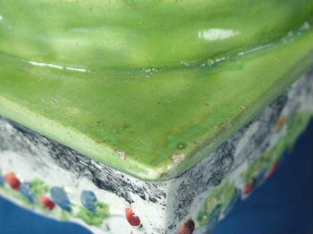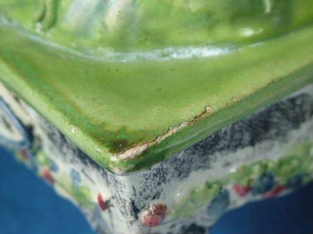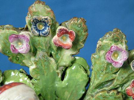 Kiln effect: a few glaze pops to front of bocage and reverse of outcrop.