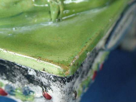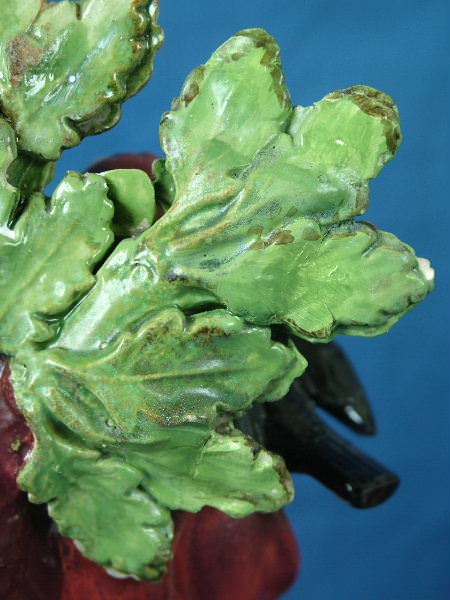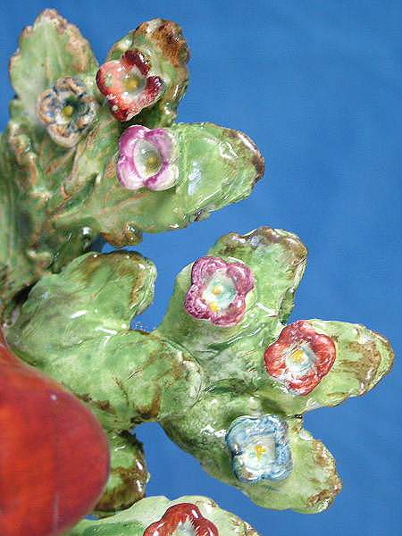 Repair to a few bocage leaves - overall, 80 percent good and original.