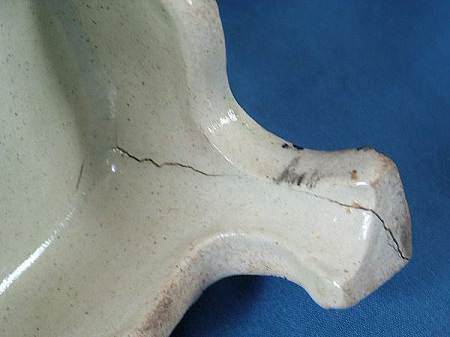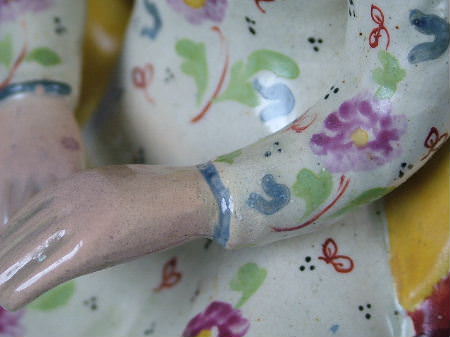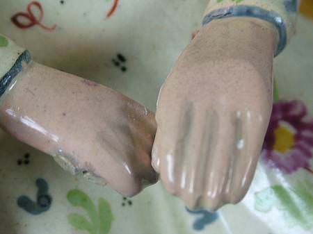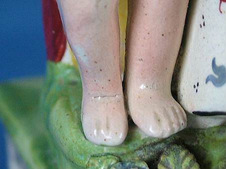 Kiln effects: shrinkage crack to top of her head and a few inside the base;