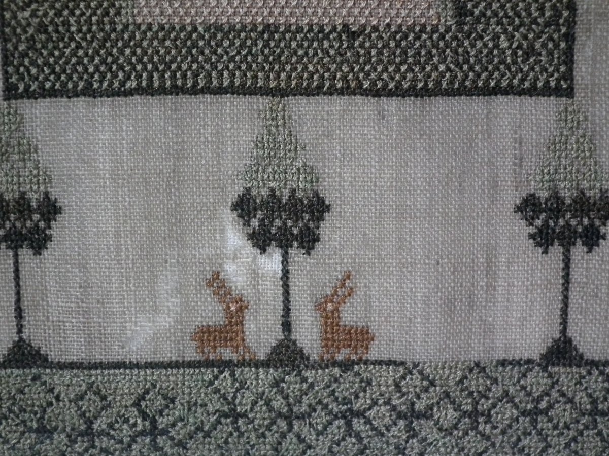 A wonderful set of motifs, finely embroidered, including a grand house and garden,