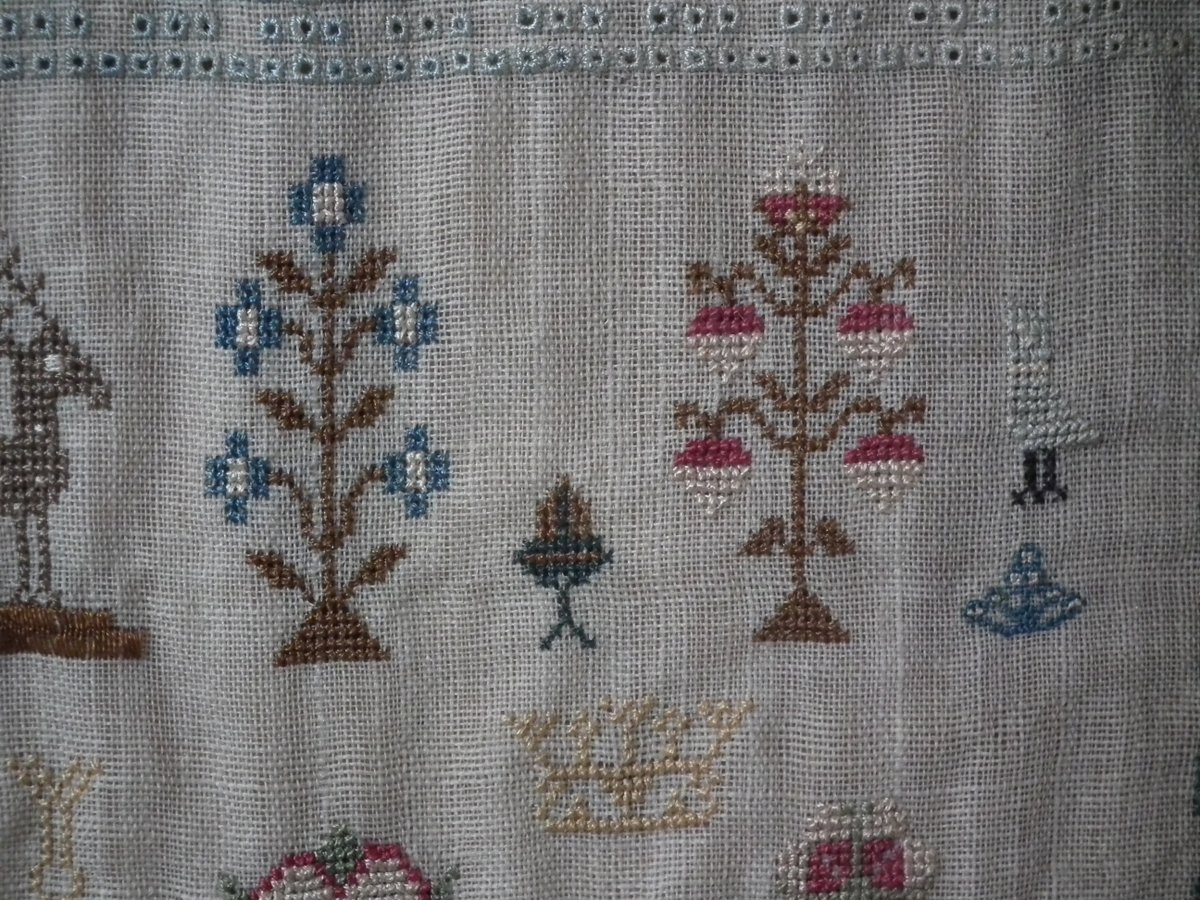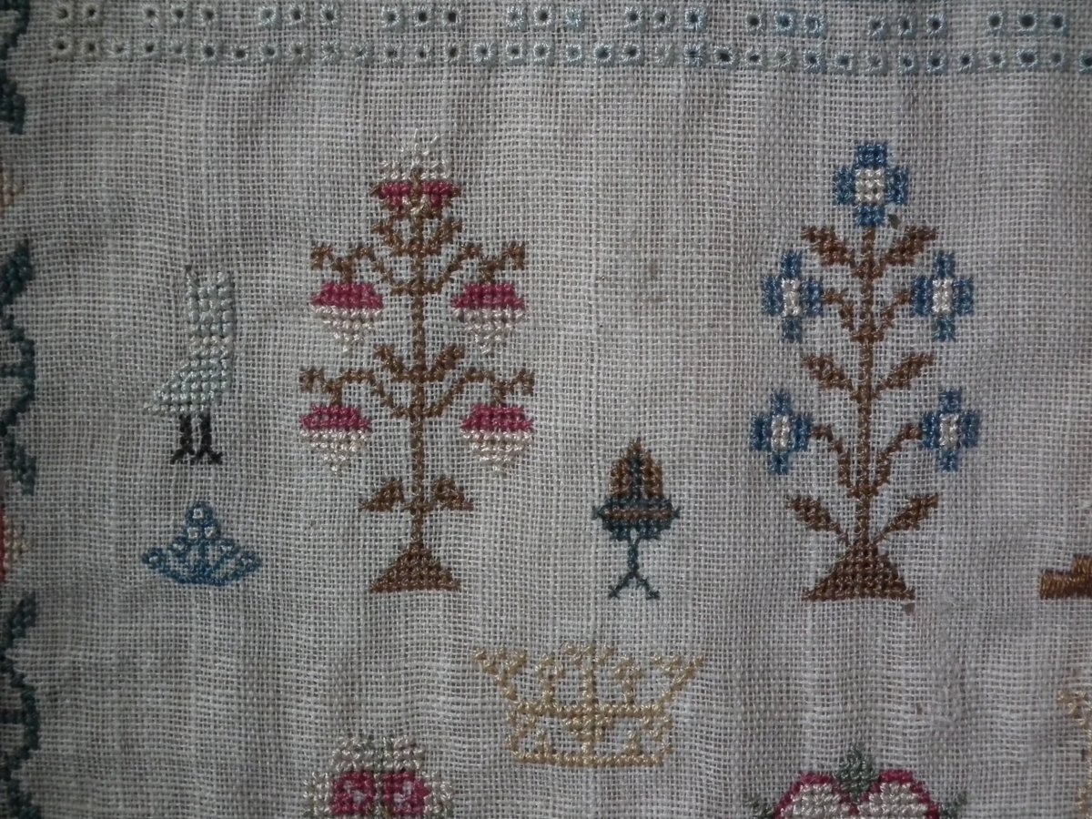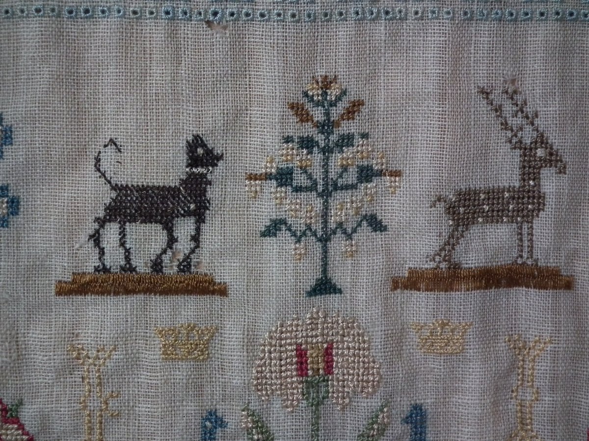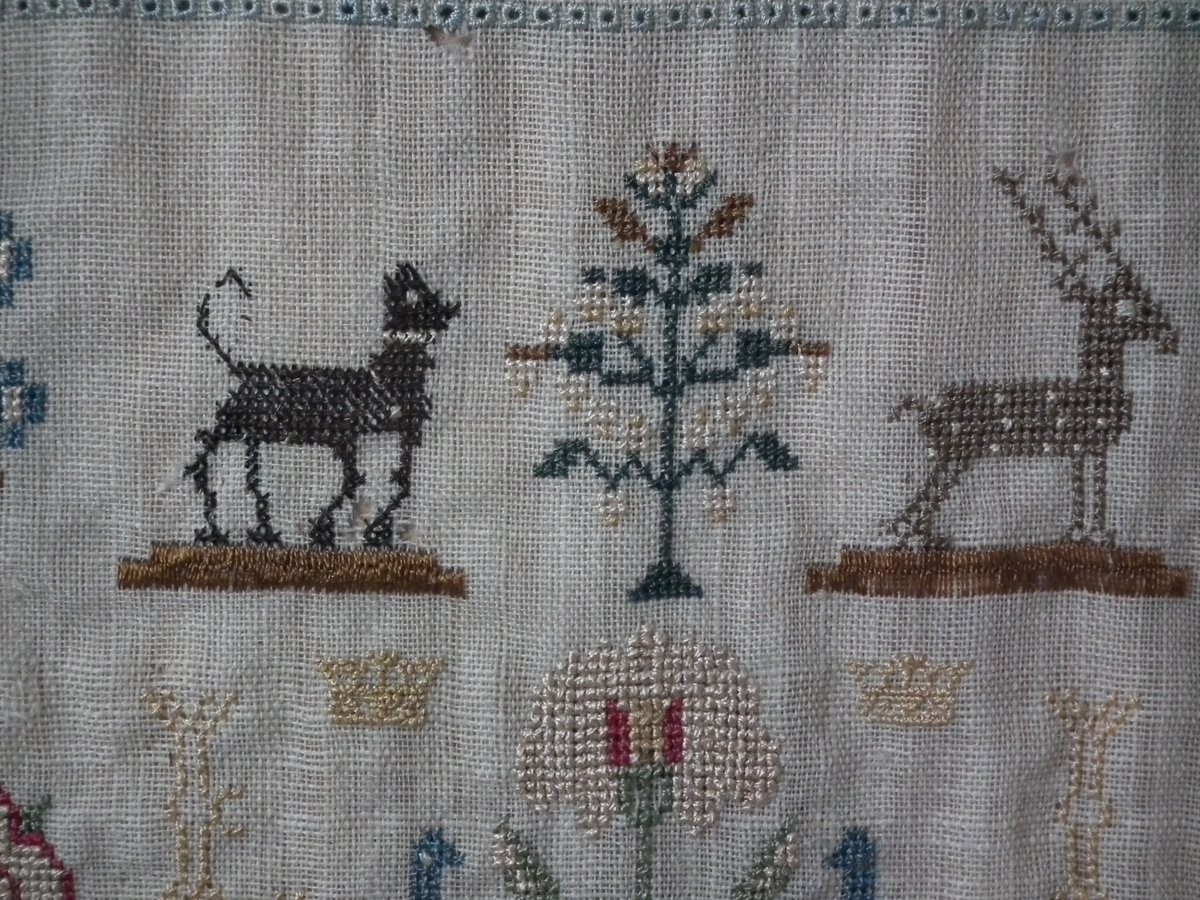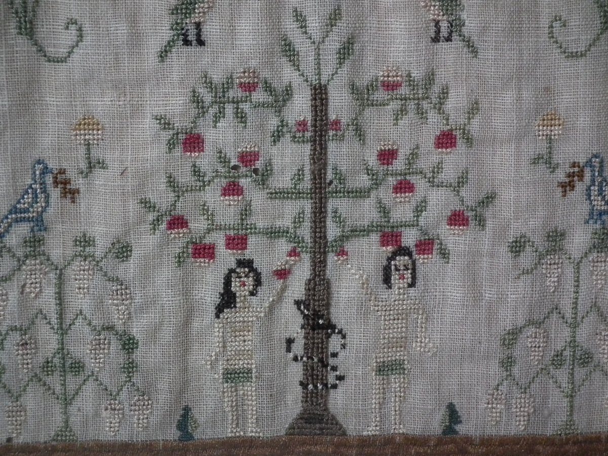A wonderful set of motifs, including Adam & Eve standing either side of the tree of life with a snake coiled around its trunk, dogs, birds, flowers, potted flowering plants, trees, laden with fruit, fir trees, blossoming trees, deer and crowns.