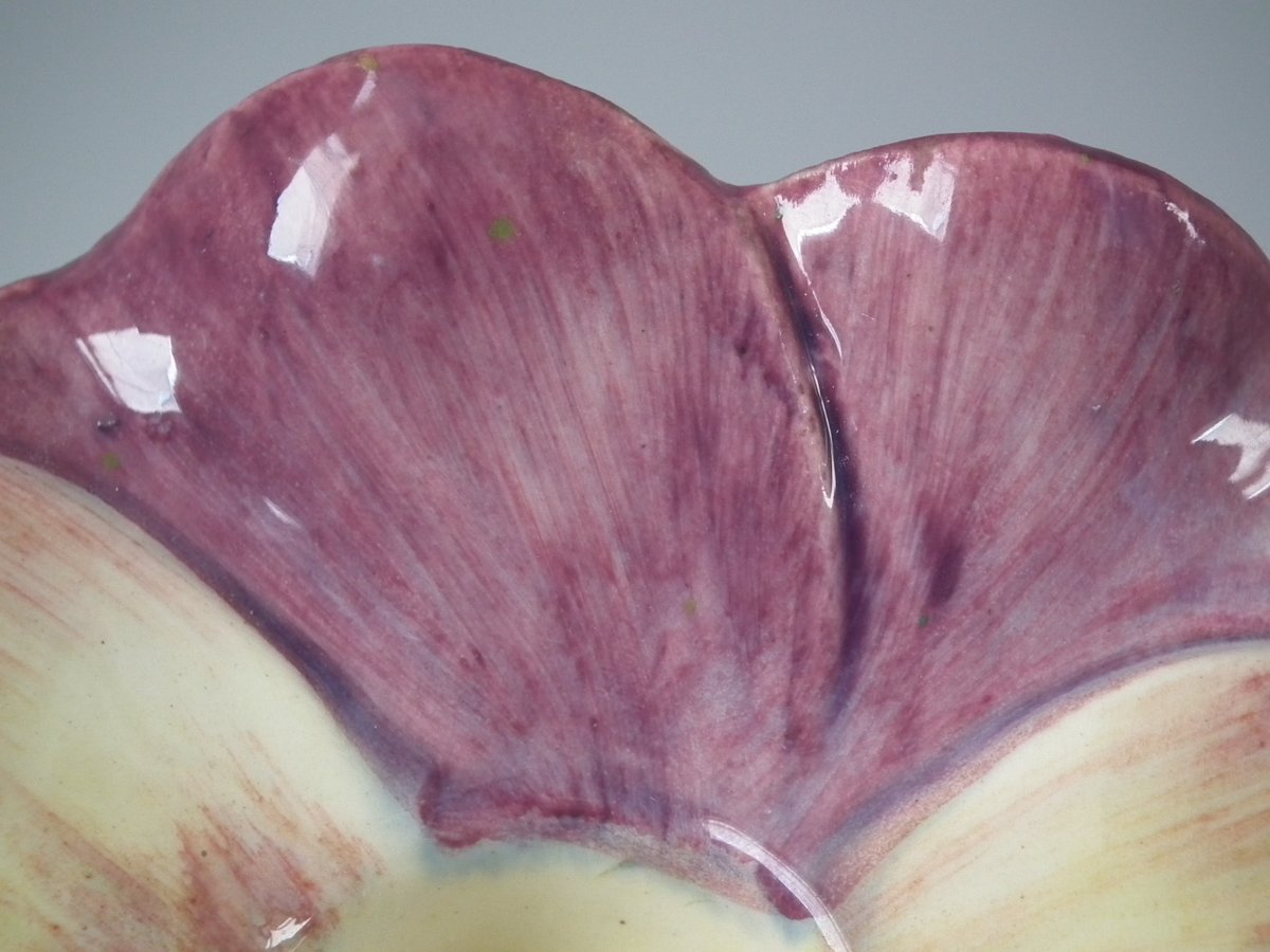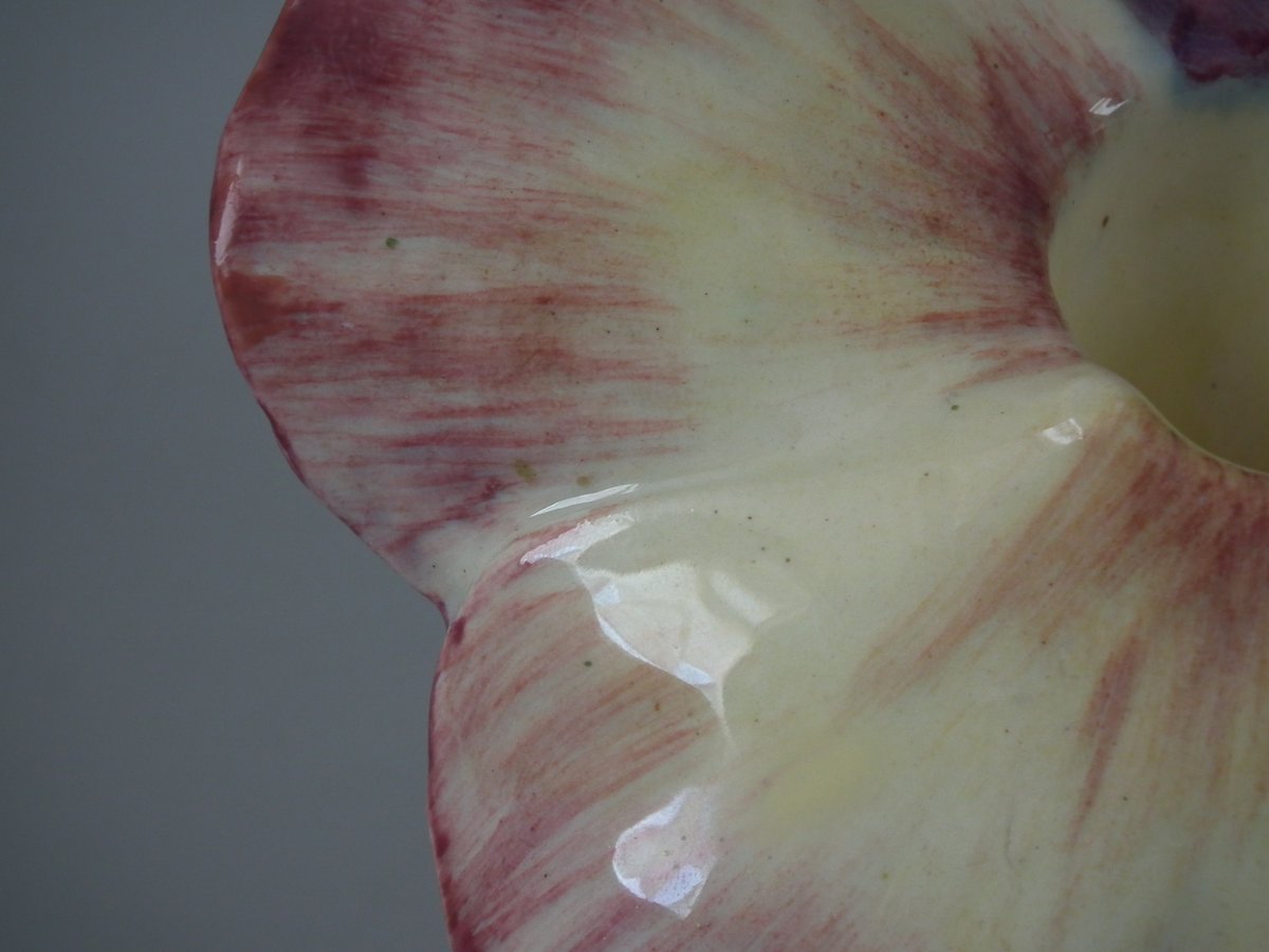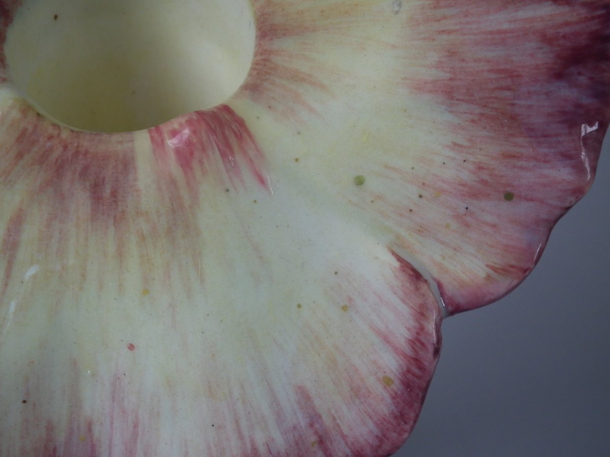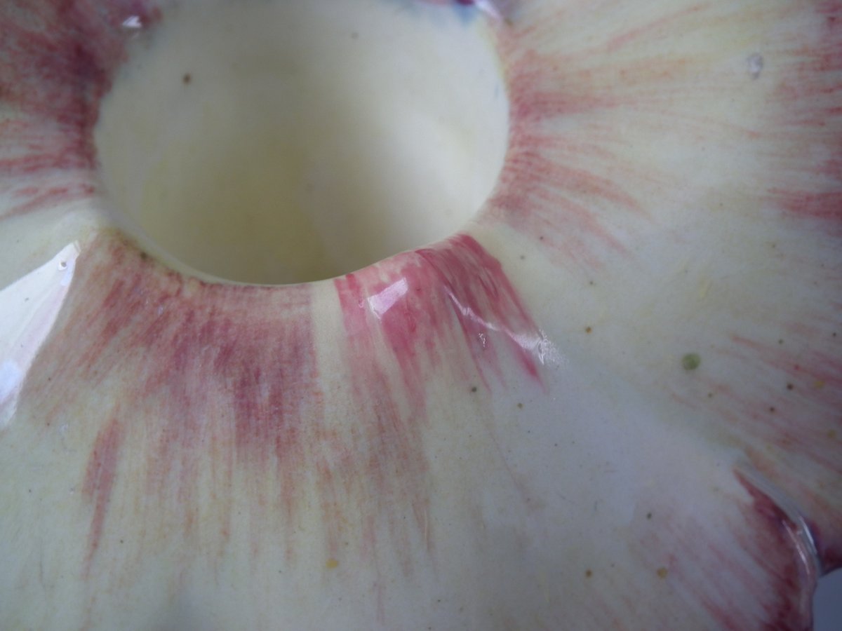 flecks of stray coloured glaze to the petals.