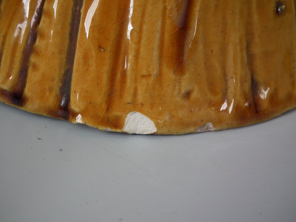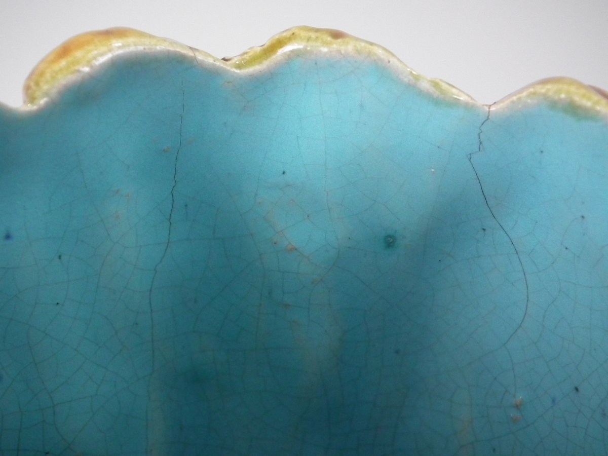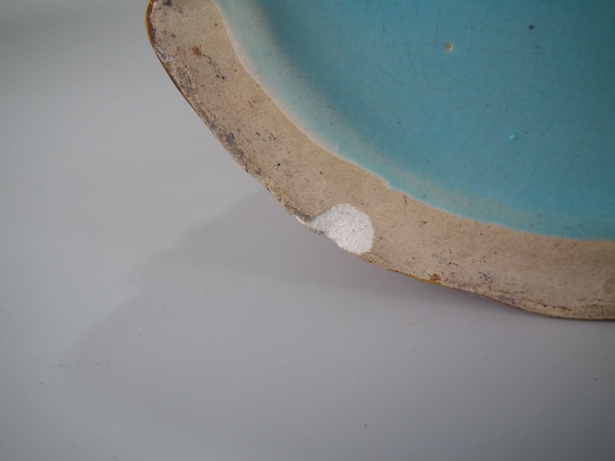 Small chips and flakes to lower base edge, bird's tail and beak.