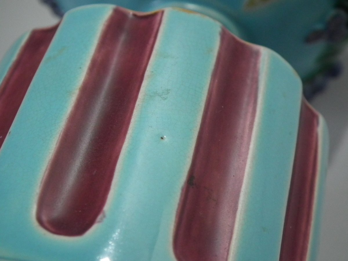 KILN EFFECTS: tiny glaze pops to some of the turquoise glaze.