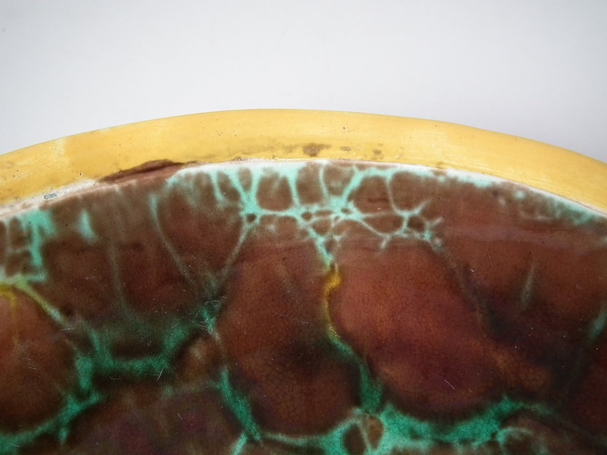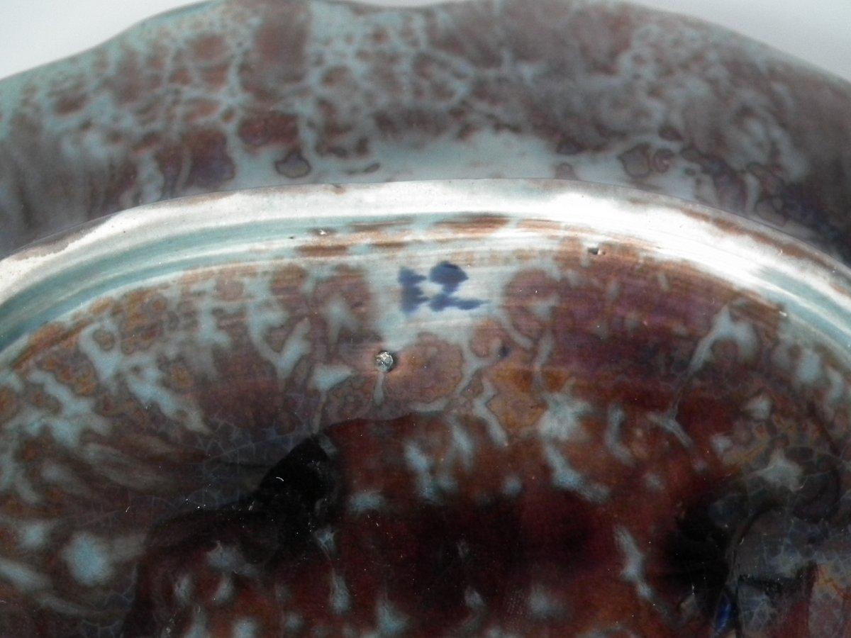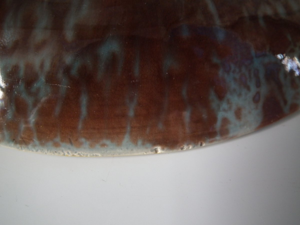 KILN EFFECTS: kiln detritus caught in the glaze to one fish's mouth;