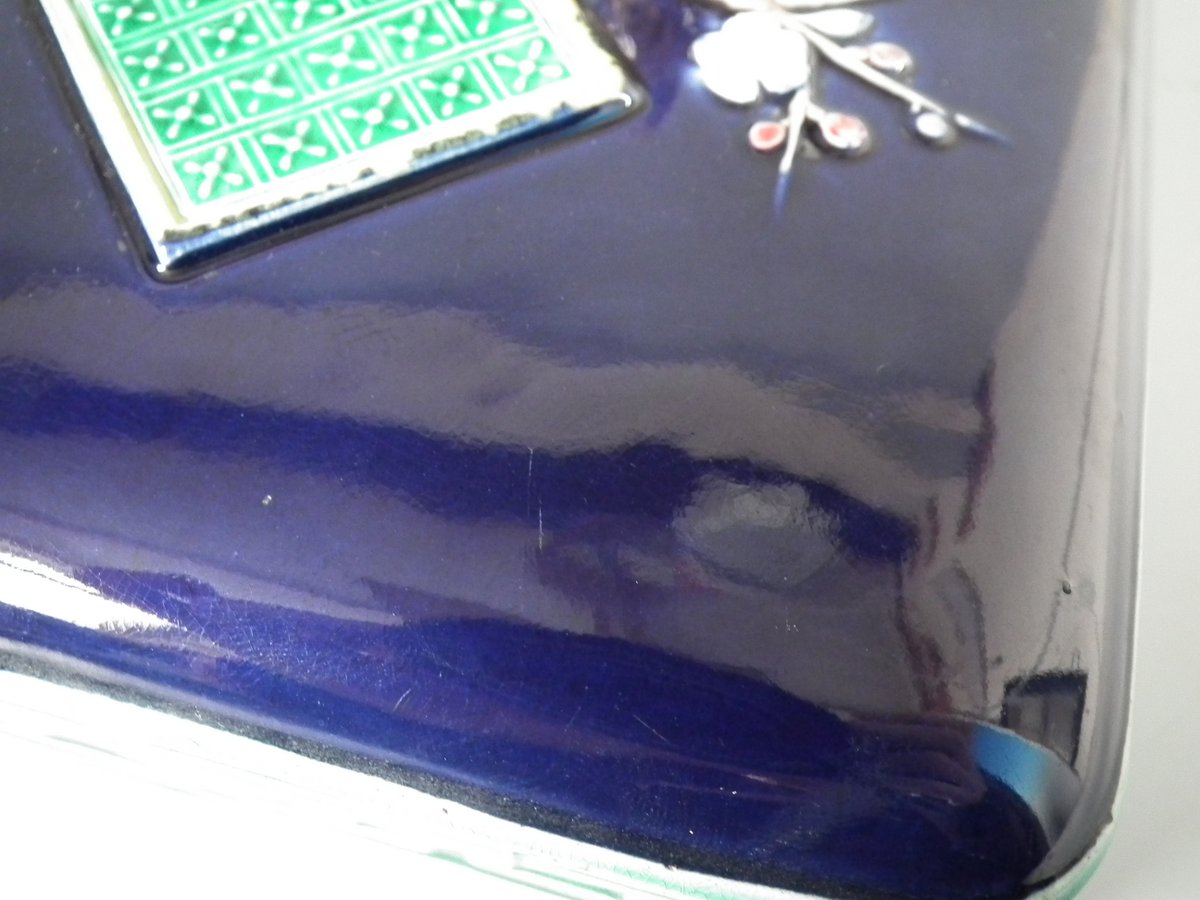 Colouration: cobalt blue, green, turquoise, are predominant.