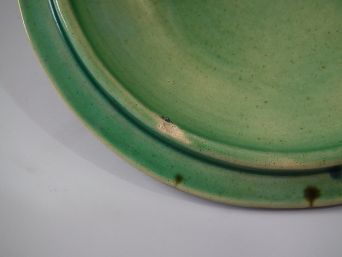 Dish: Very good. No restoration. KILN EFFECTS: a few glaze pops to the interior.