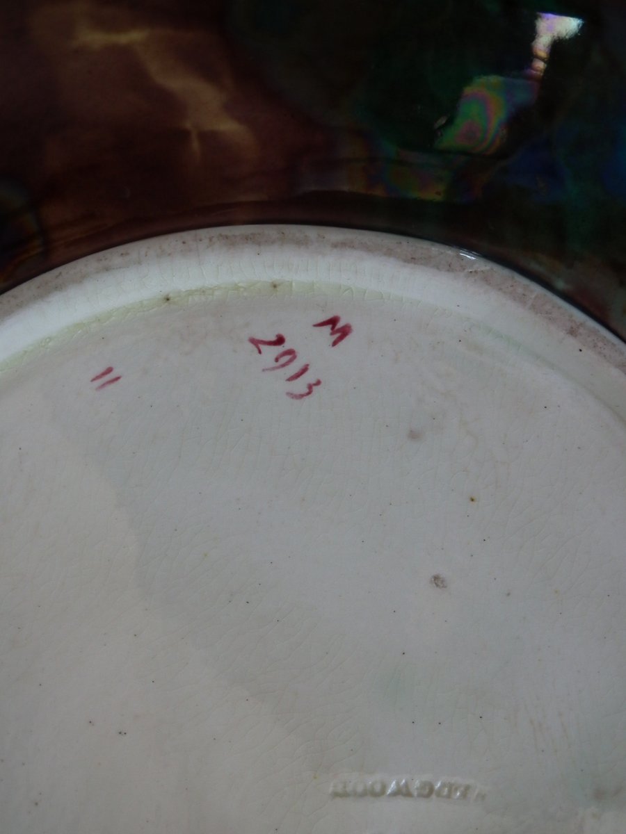 The piece bears maker's marks for the Wedgwood pottery. Bears a pattern number, '2913'.