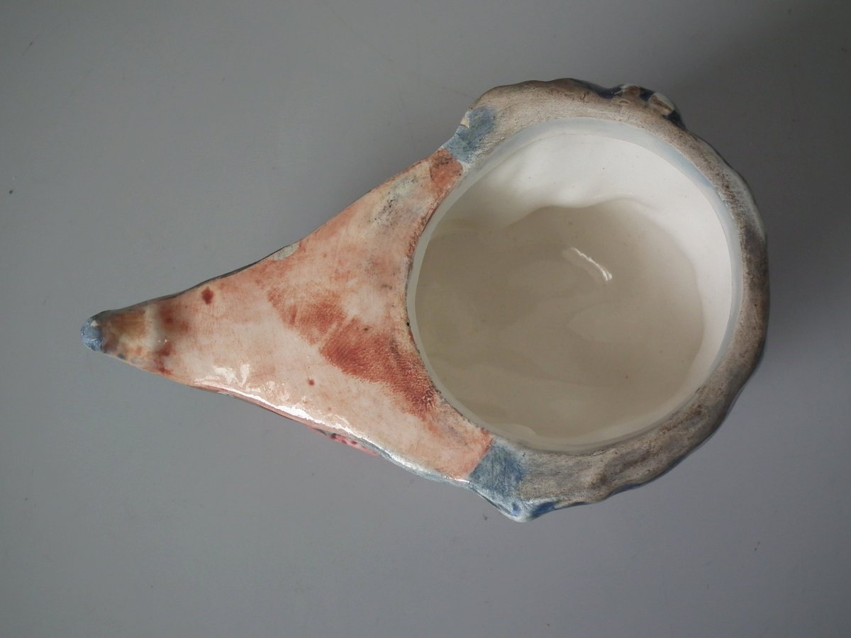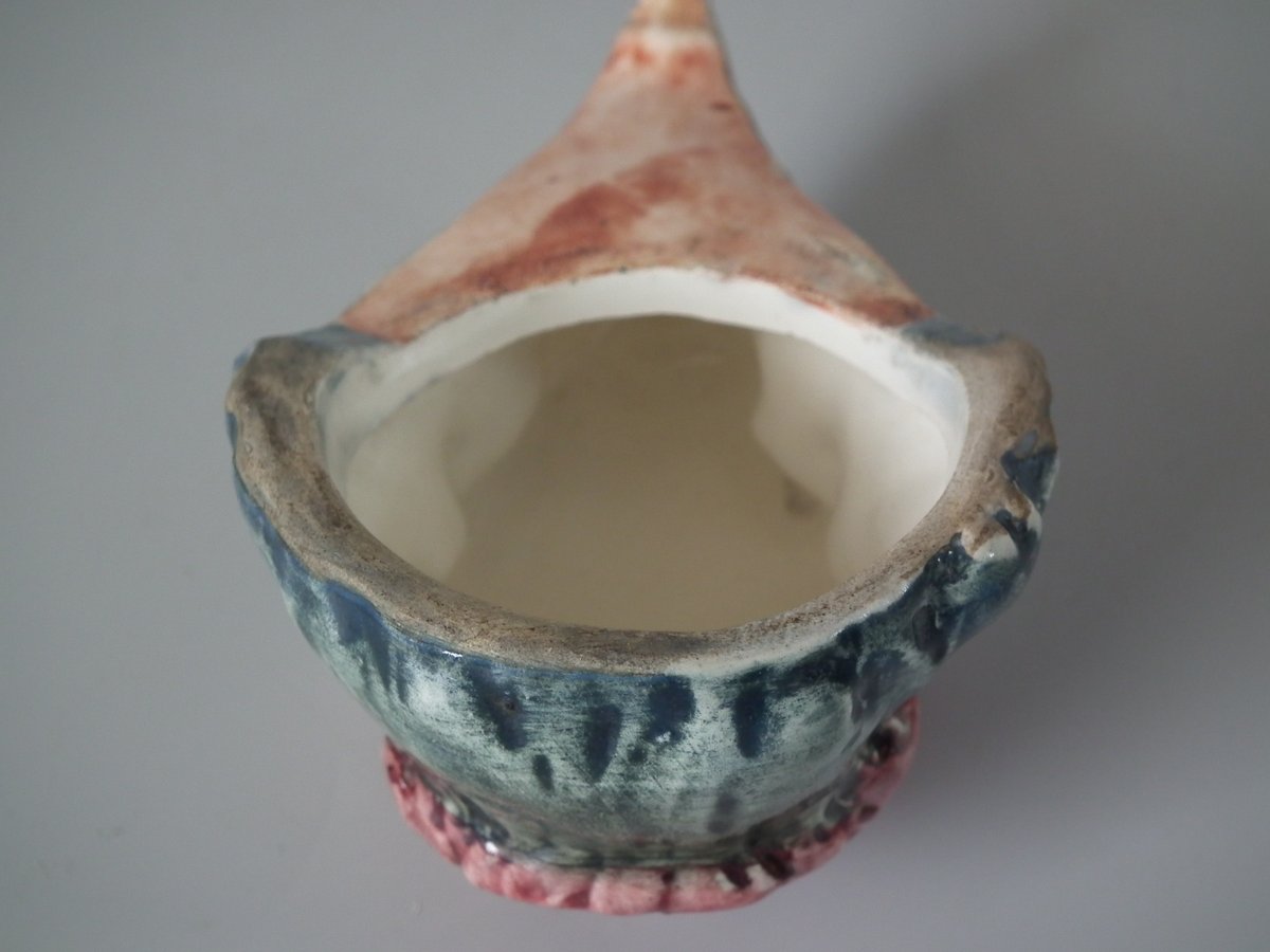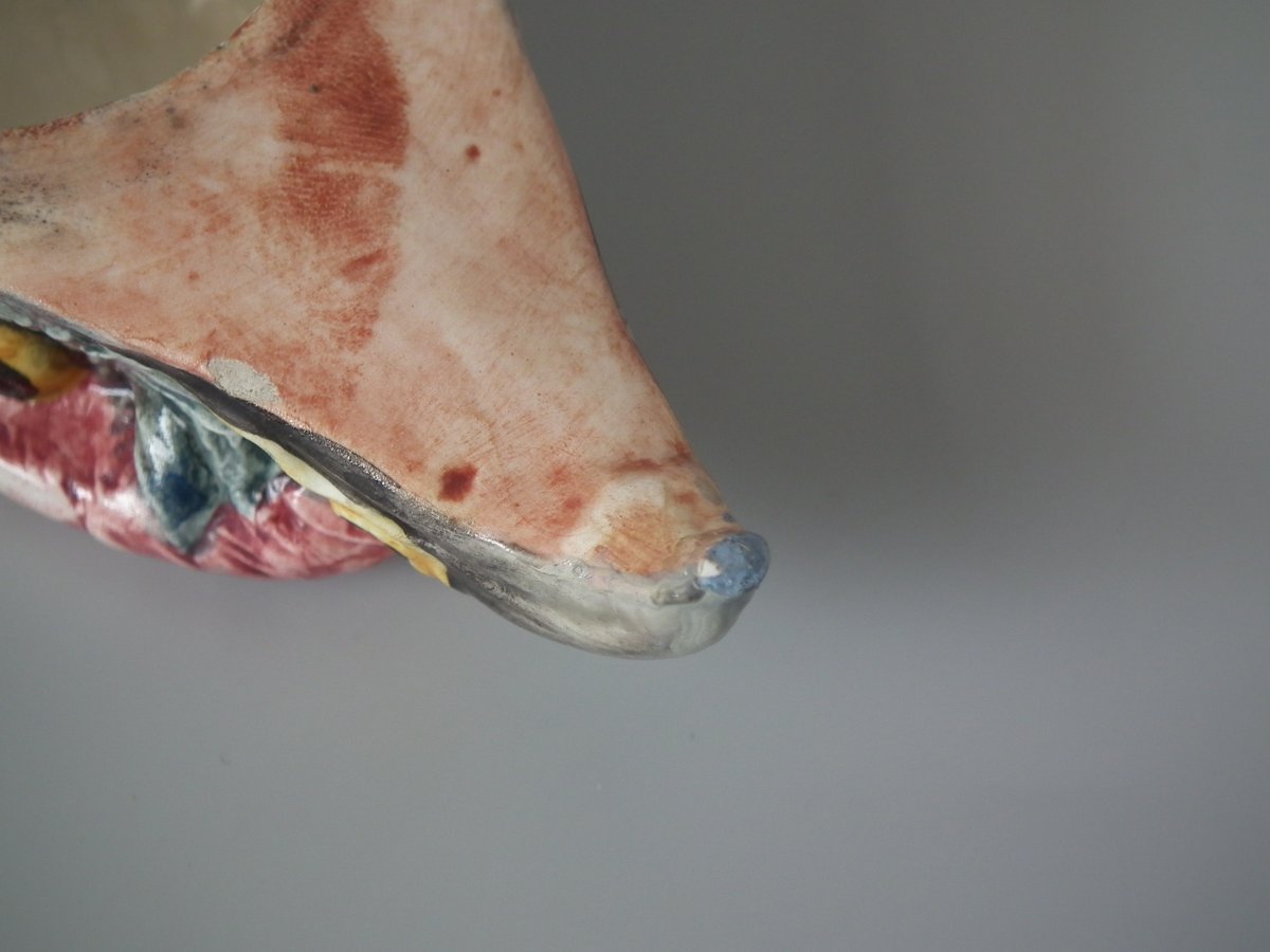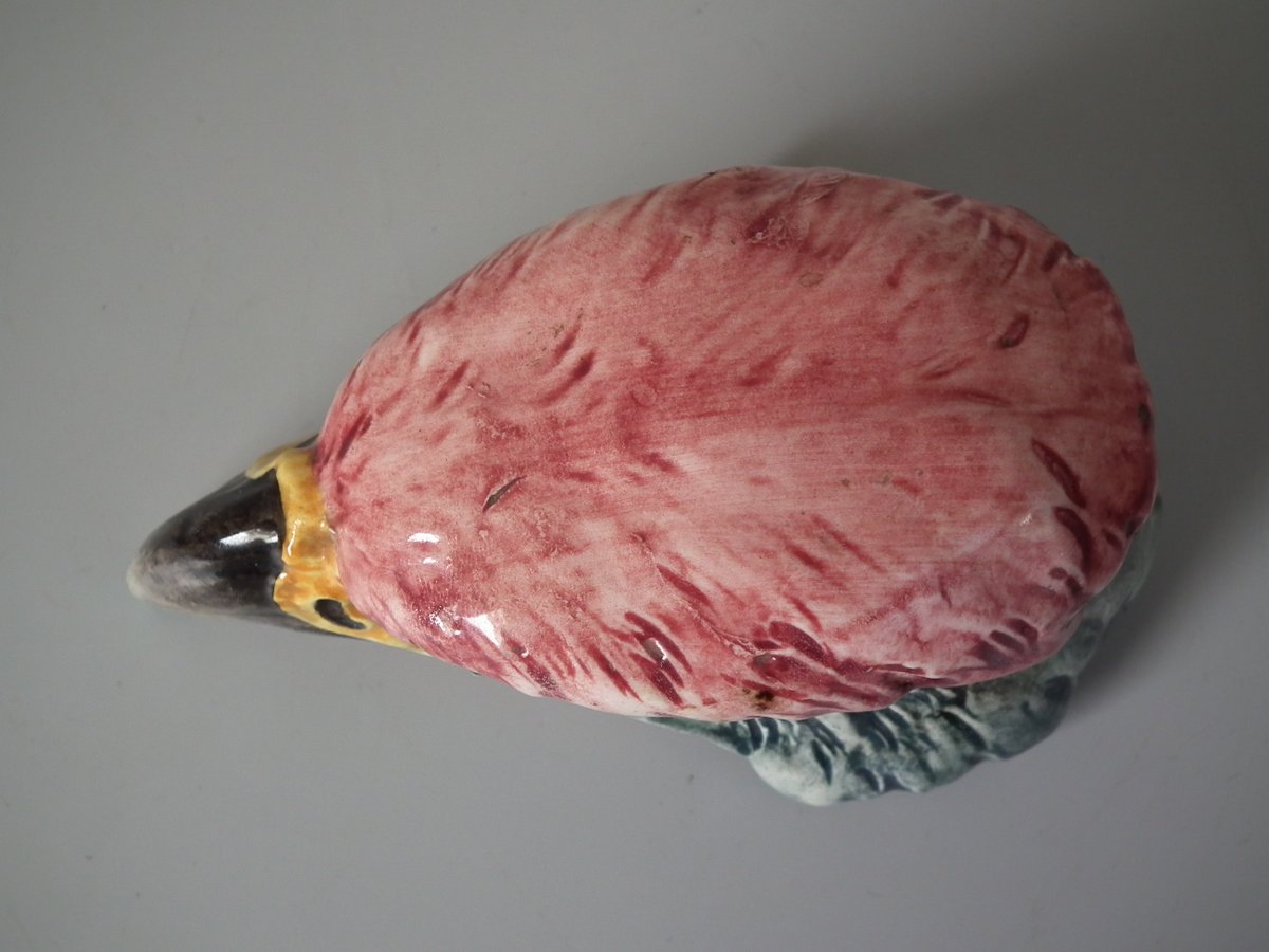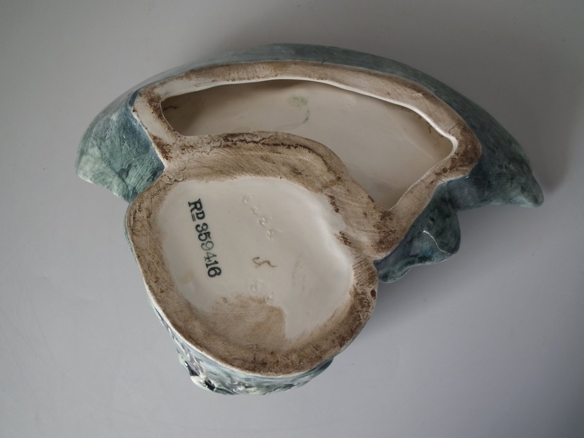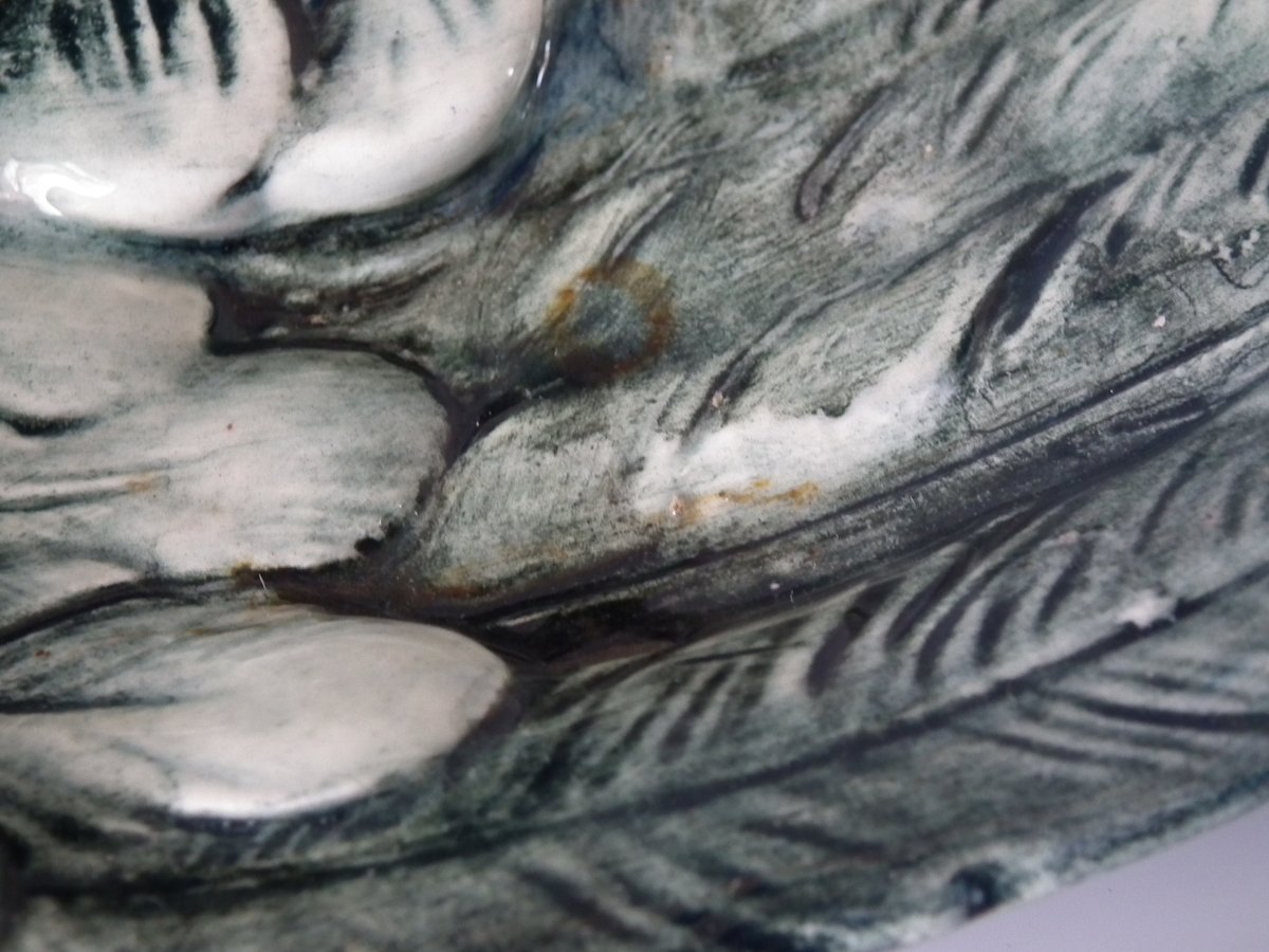 Victorian, circa 1900. 4.5ins high, 8.3ins wide, 5.9ins depth. English Majolica inkwell which features an eagle's head and wing.