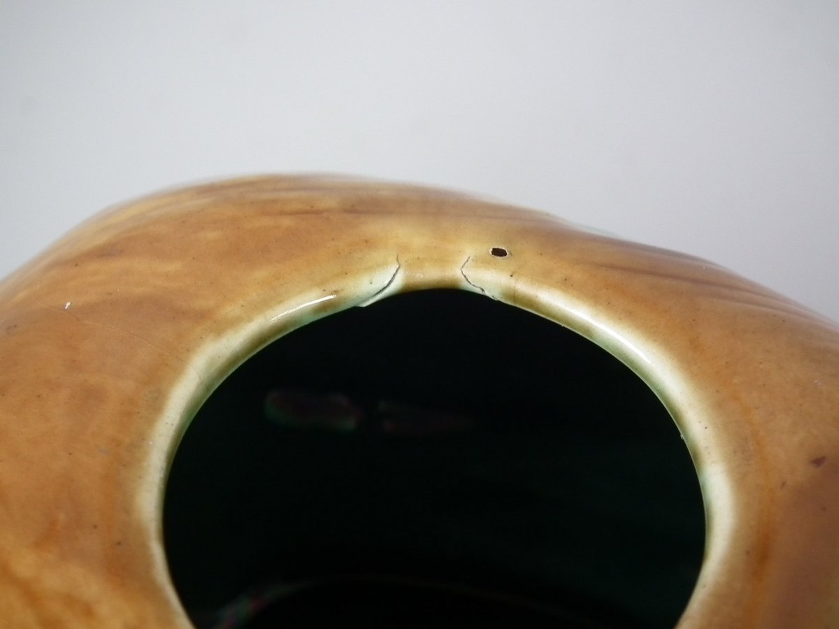 CONDITION: Teapot: Good. KILN EFFECTS: shrinkage cracks to the rim;