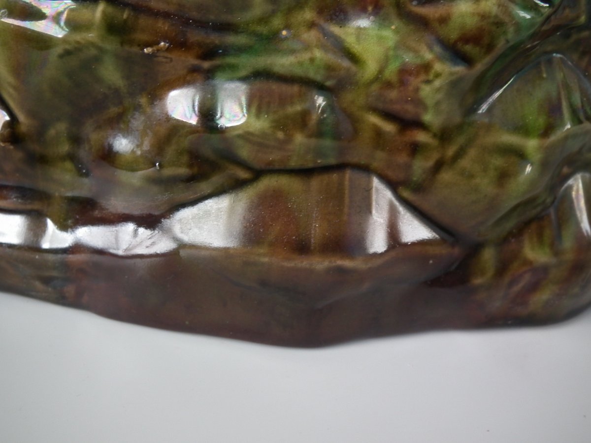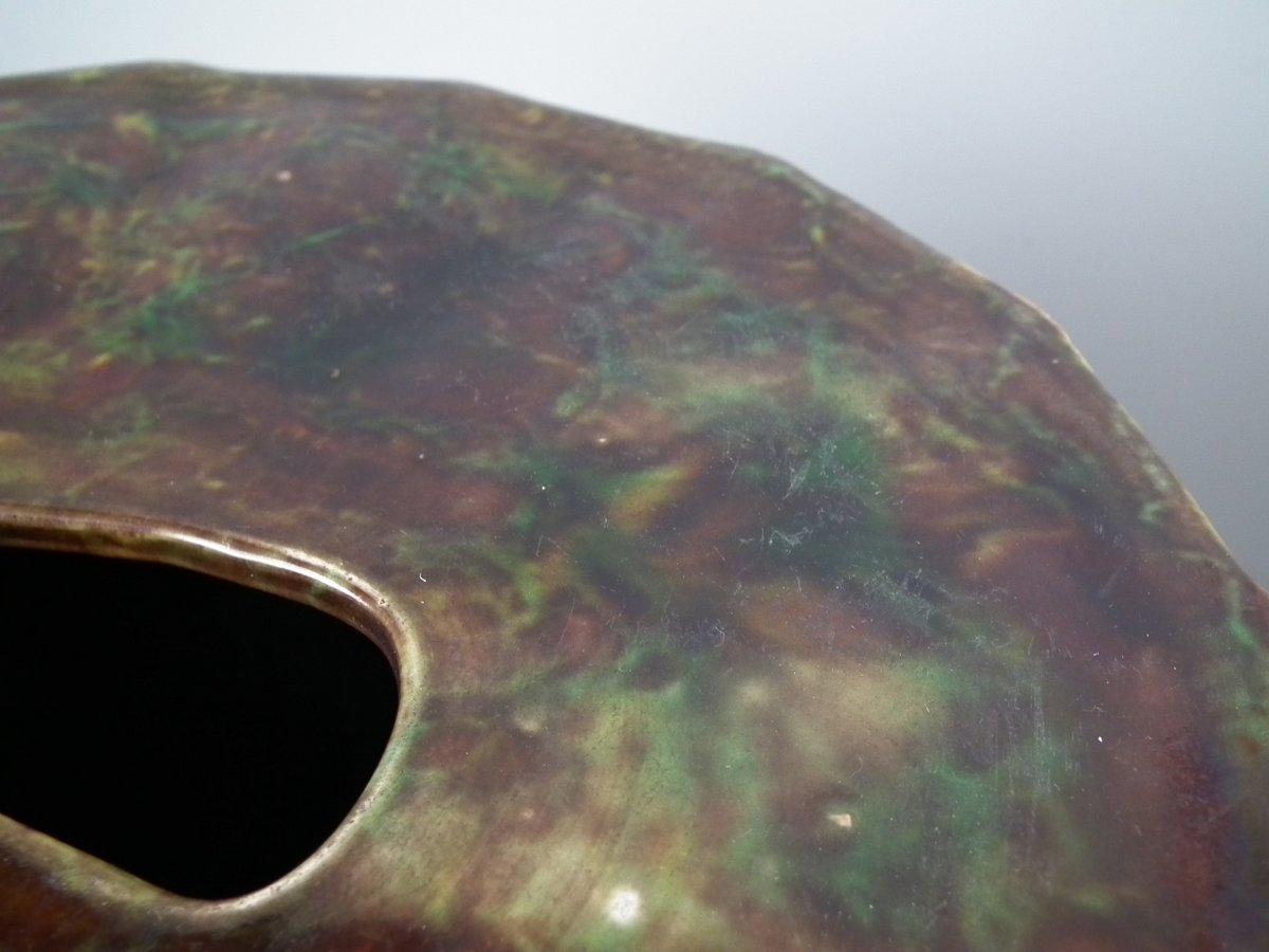 KILN EFFECTS: kiln detritus caught in the glaze.
