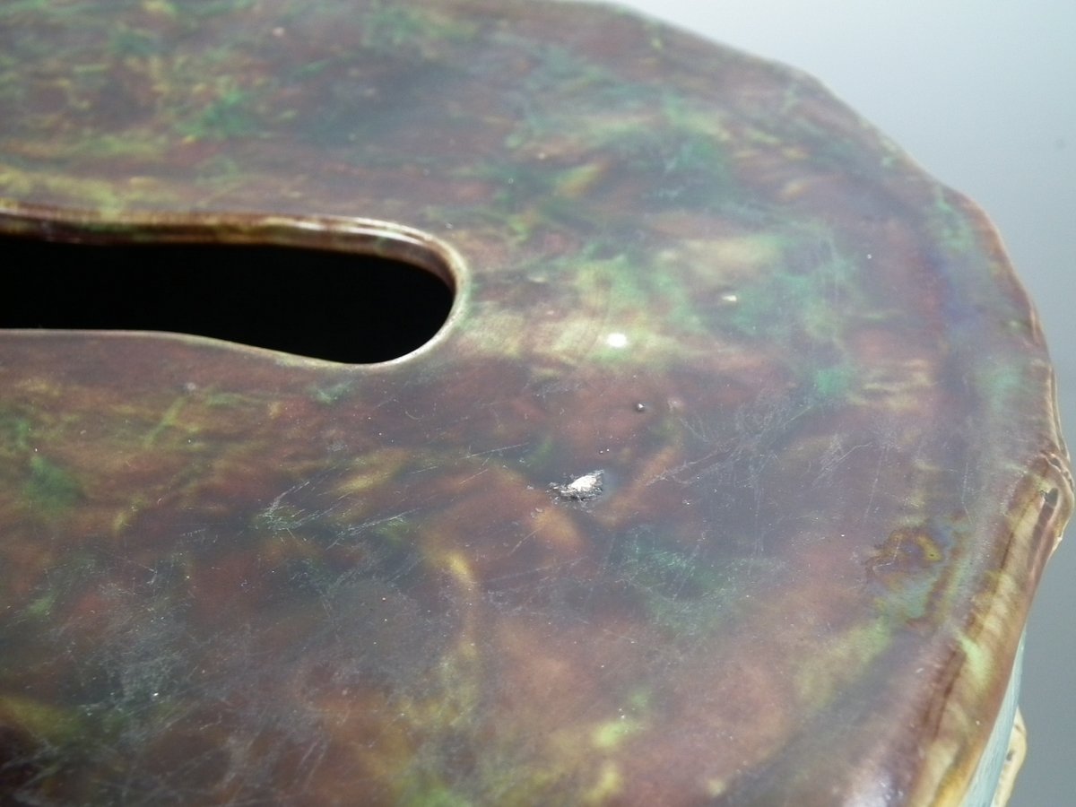 RESTORATION. Stabilised and retouched crack to base edge.