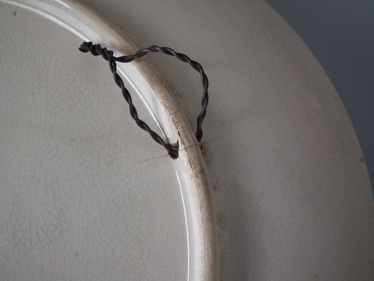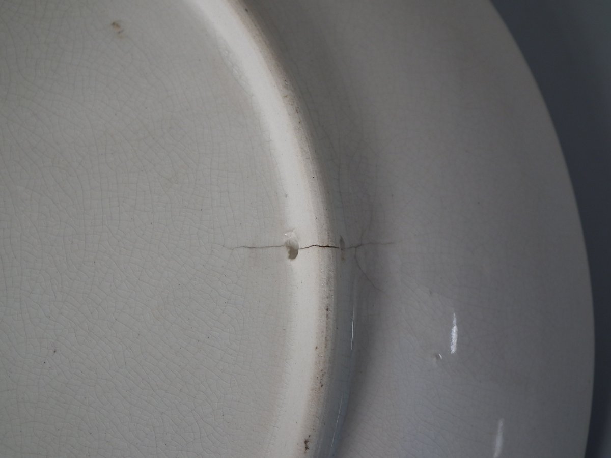 KILN EFFECTS: firing cracks to 3 of the hanging holes on reverse.