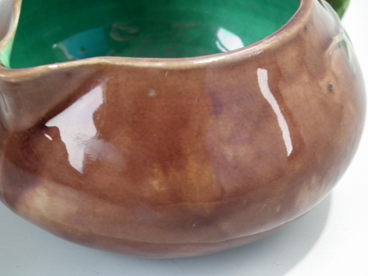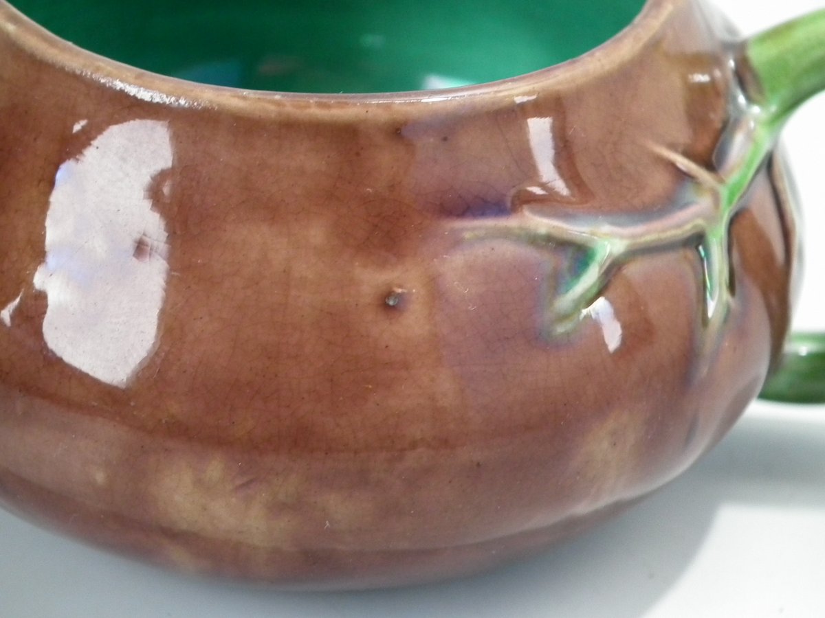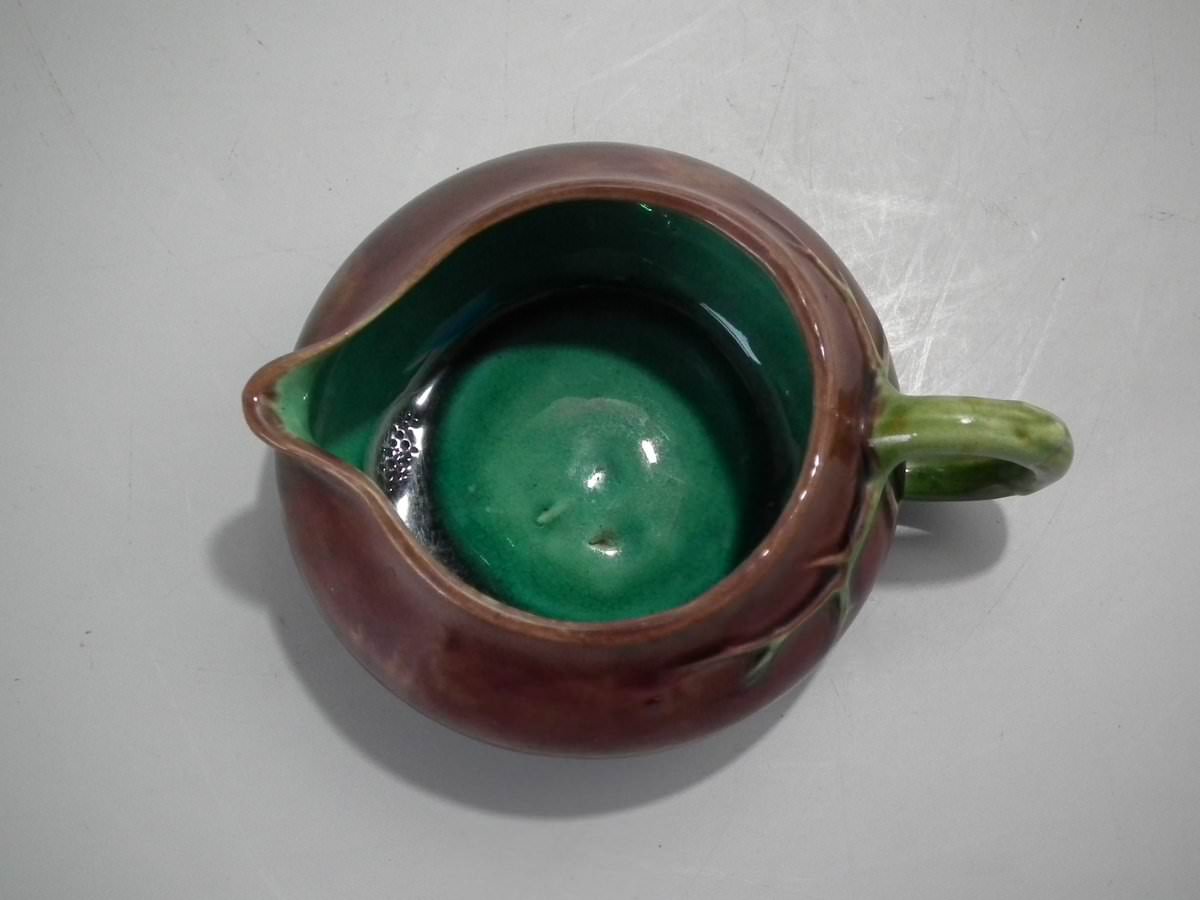 Victorian, circa 1872. 1.9ins high, 4.4ins wide, 3.5ins depth. Minton Majolica creamer which features a branch handle.
