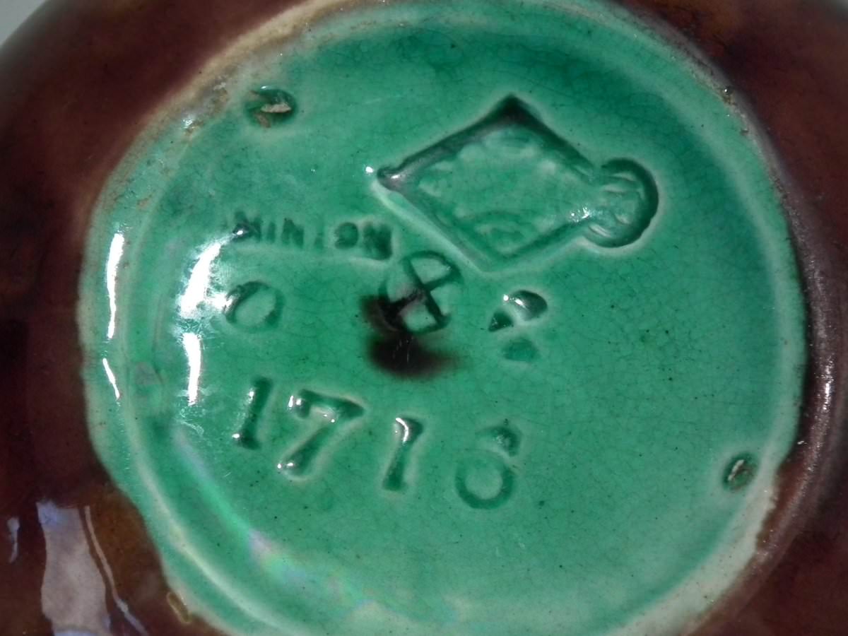 The piece bears maker's marks for the Minton pottery. Bears a pattern number, '1716'.