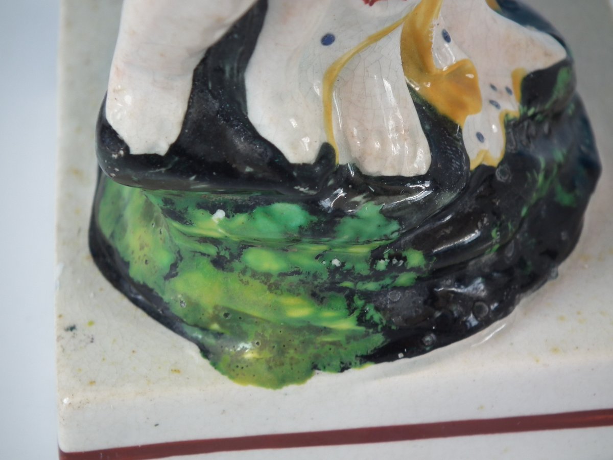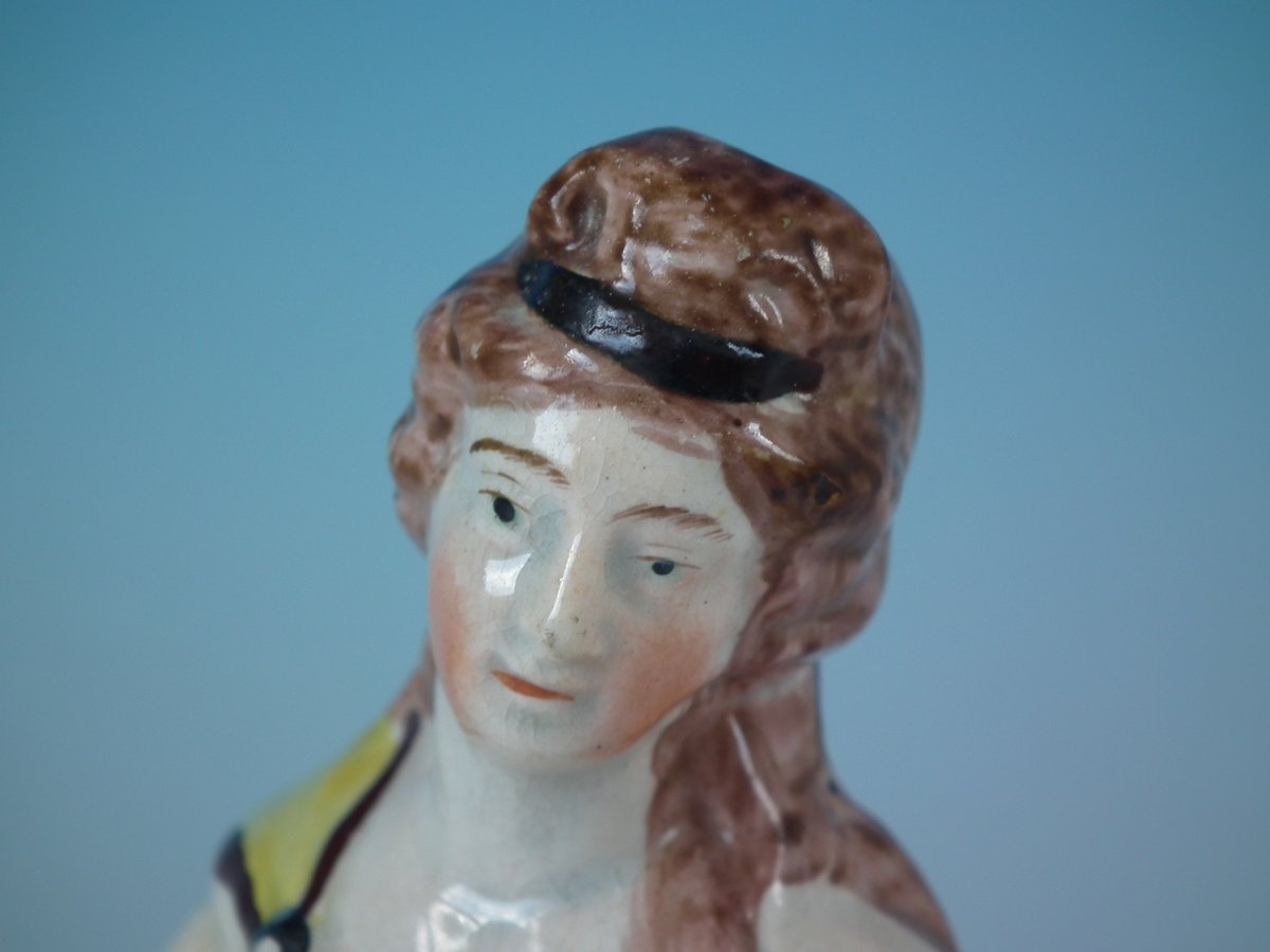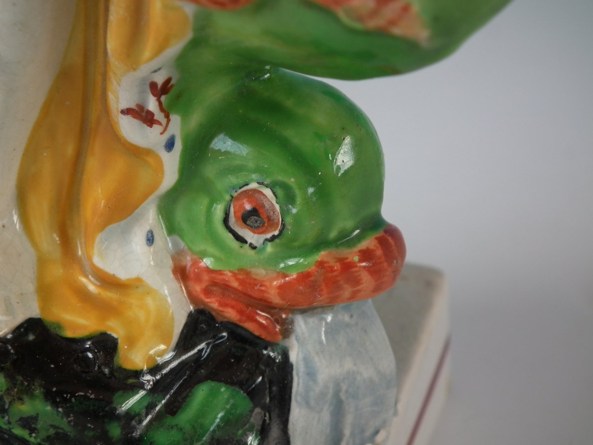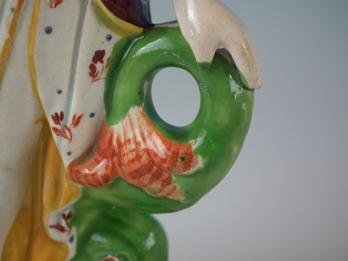 pre-Victorian, circa 1820. 8.7ins high, 4.1ins wide, 3.1ins depth. Staffordshire Pottery pearlware figure with a mythological theme which features Venus