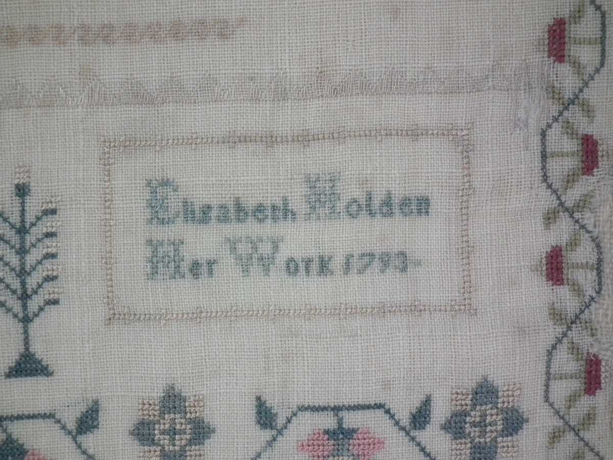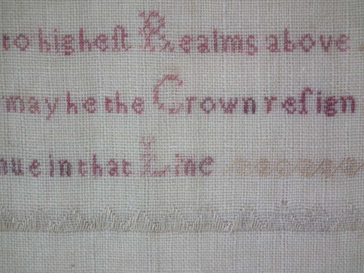 The sampler is possibly commemorative of the war against revolutionary and Napoleonic France.