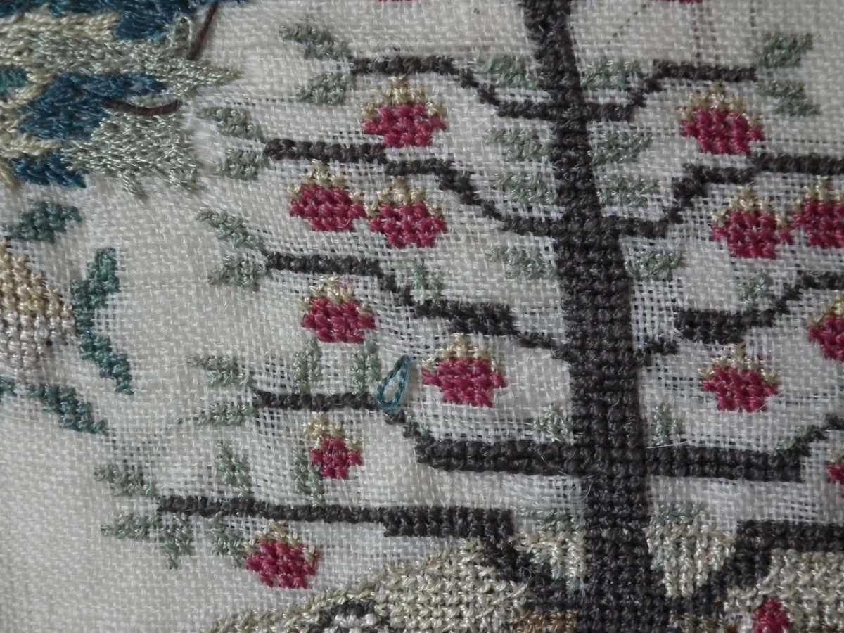 A wonderful set of motifs, some finely embroidered, including Adam & Eve standing either side of the tree of life with a snake coiled around its trunk,
