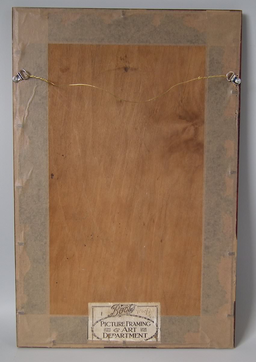 Some stitch losses to the border, divider lines, the signature, and motifs.
