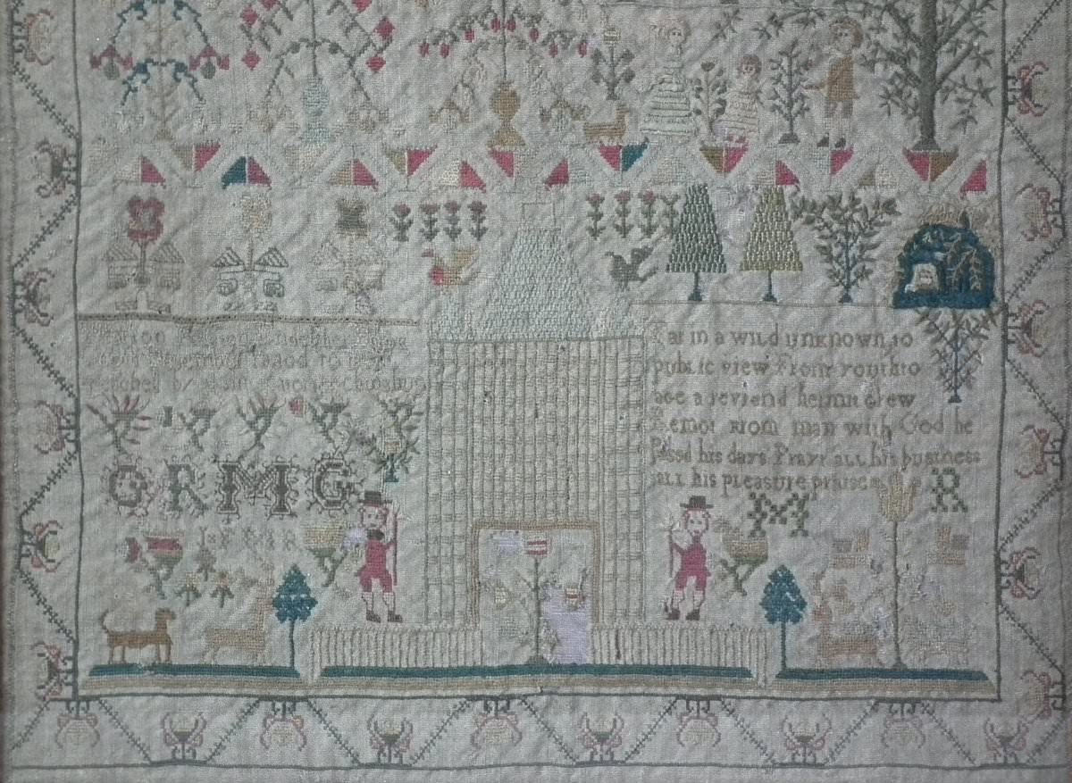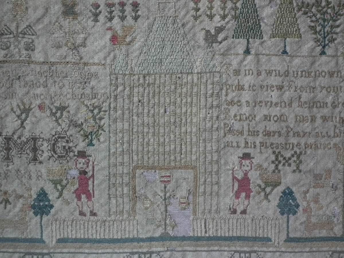 George III, Circa 1800. 15ins high, 12.2ins wide, 0.8ins deep. Circa 1800 Verse Sampler by Marion Preston.