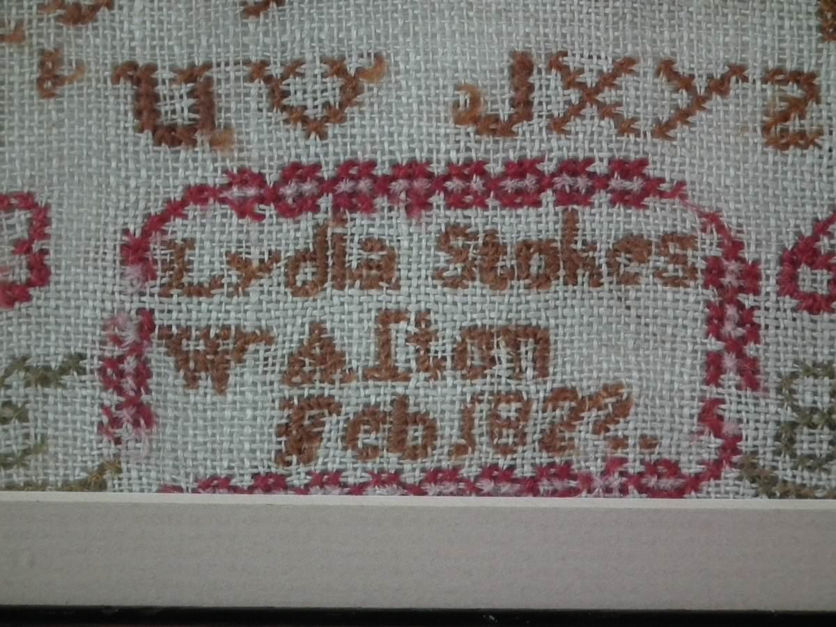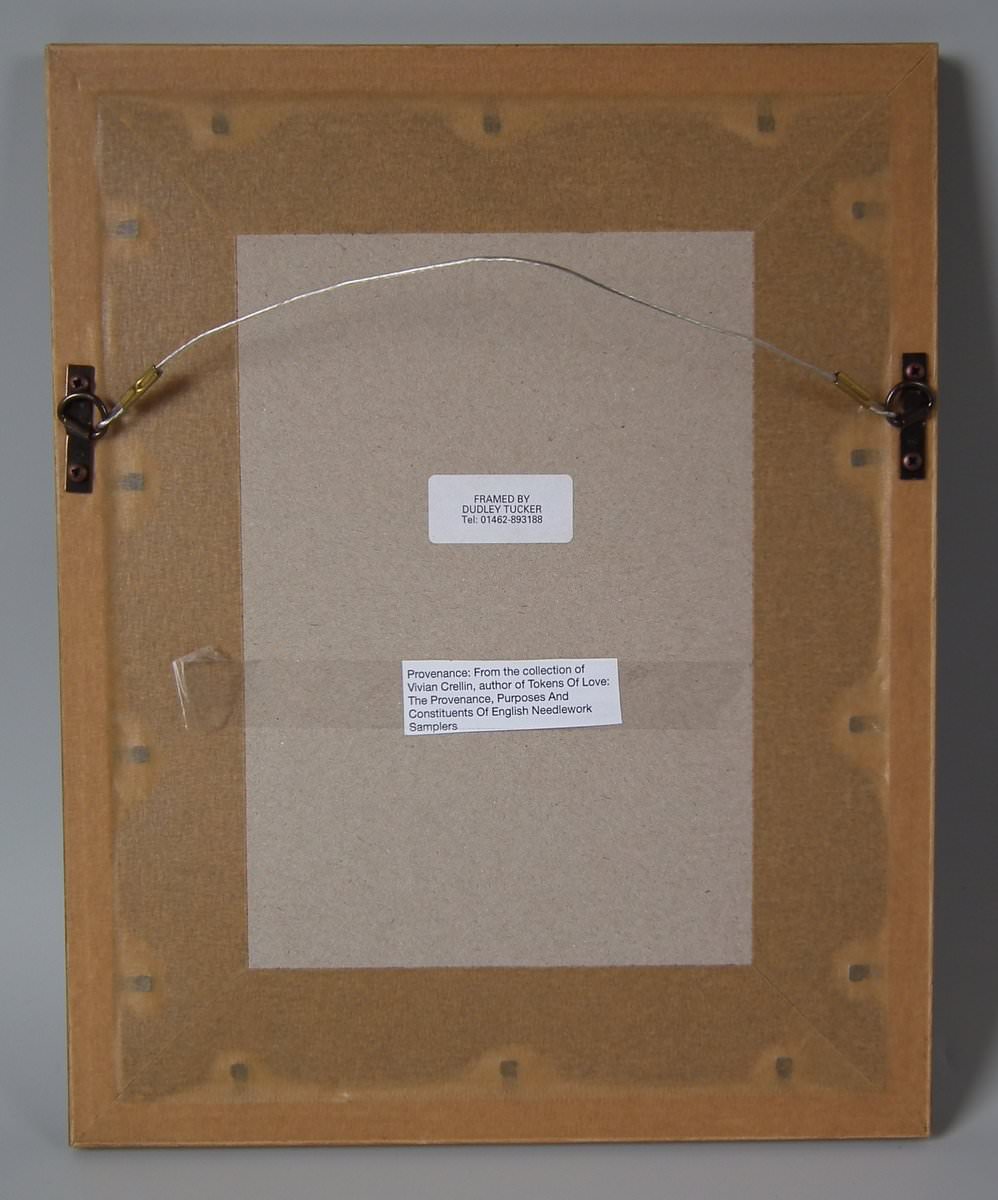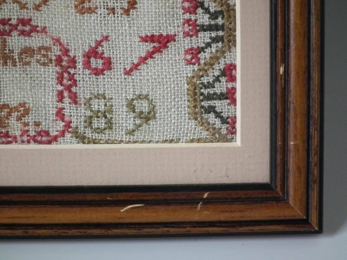 Mounting: The sampler is fixed to card. Frame backed with cardboard.