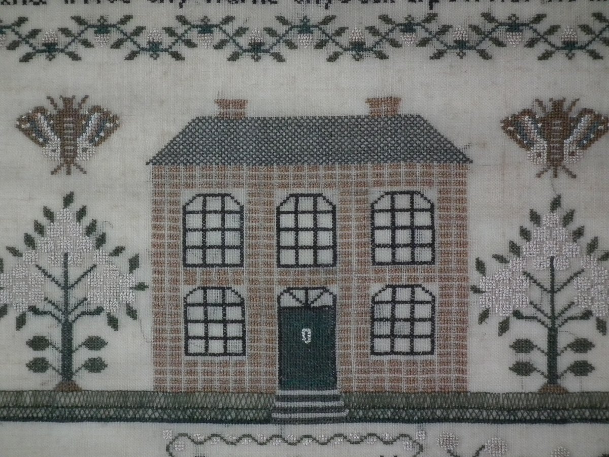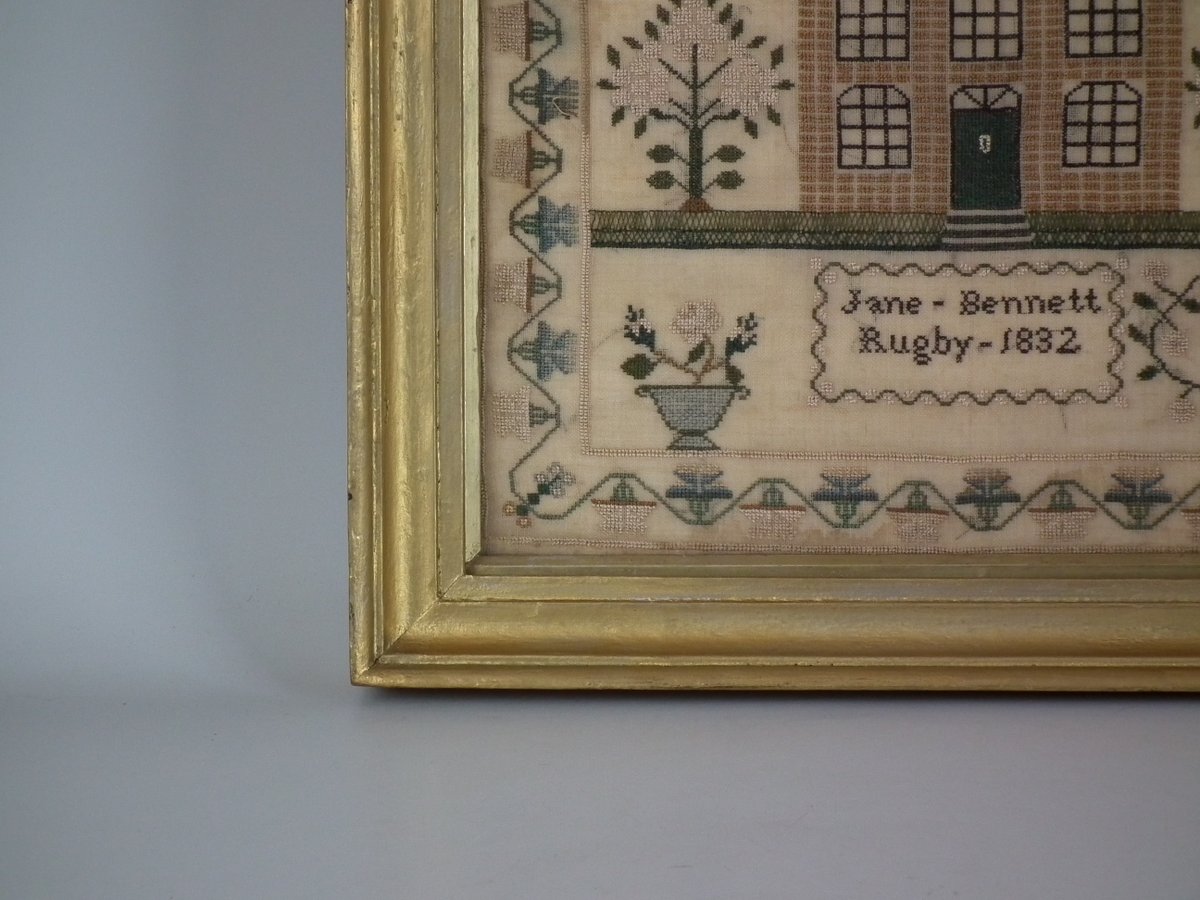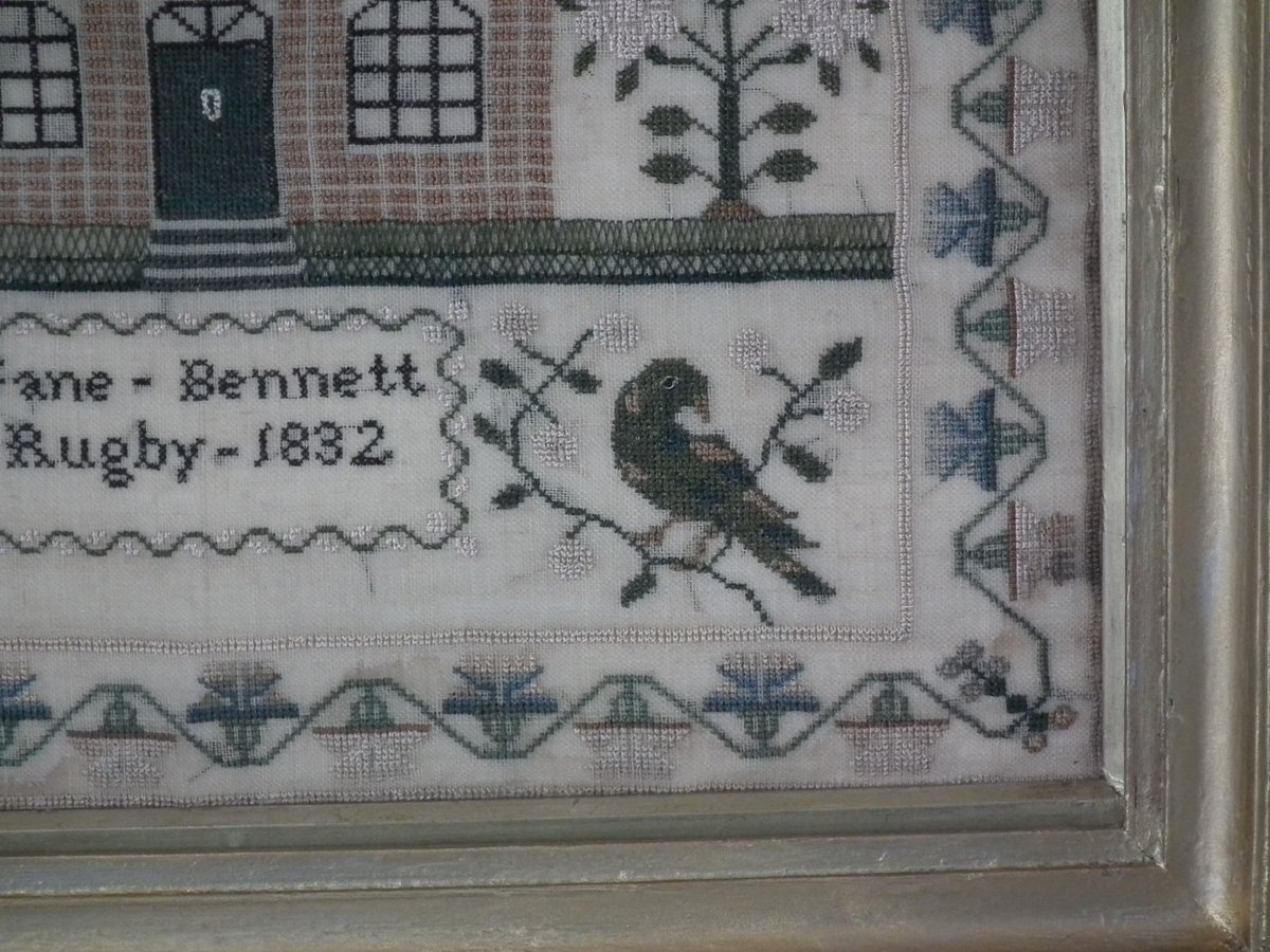 William IV, dated 1832. 14.2ins high, 12.2ins wide, 1.6ins deep. 1832 Sampler by Jane Bennett.