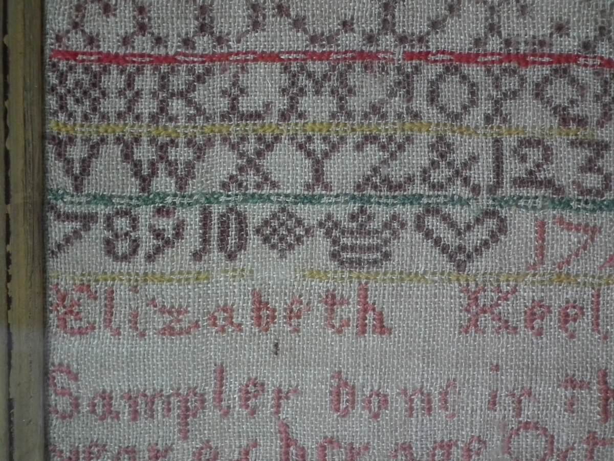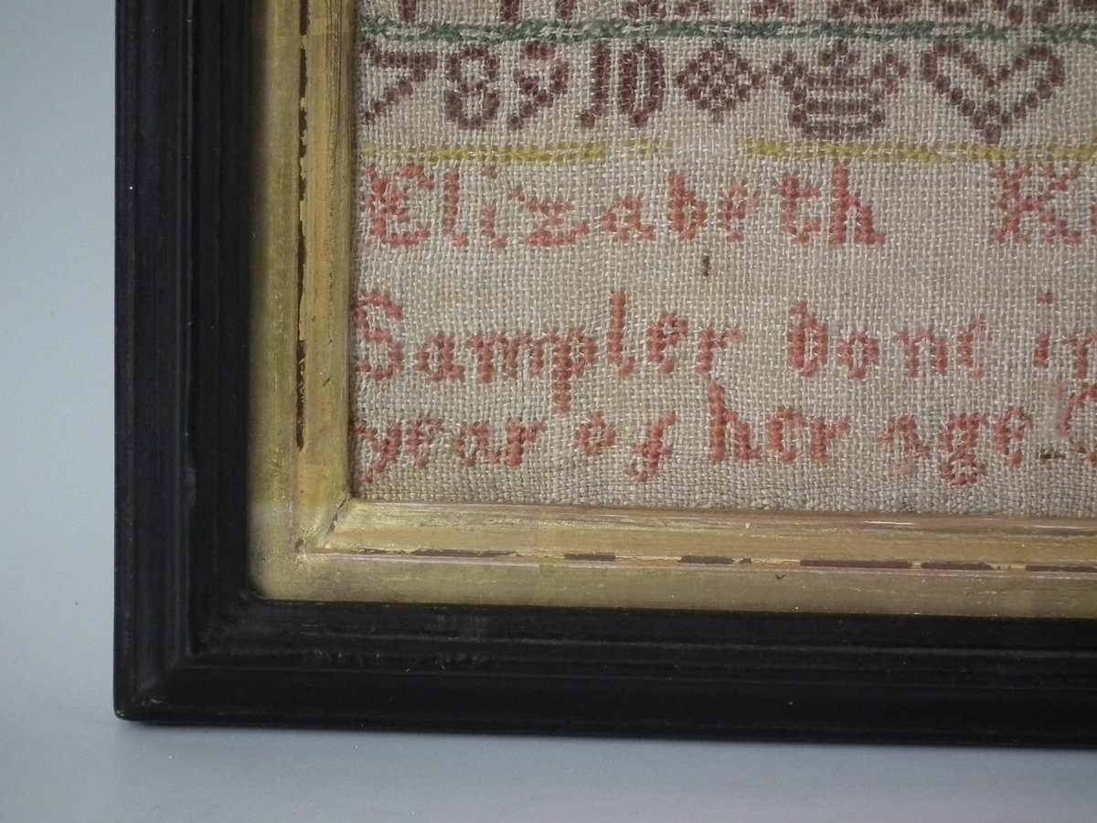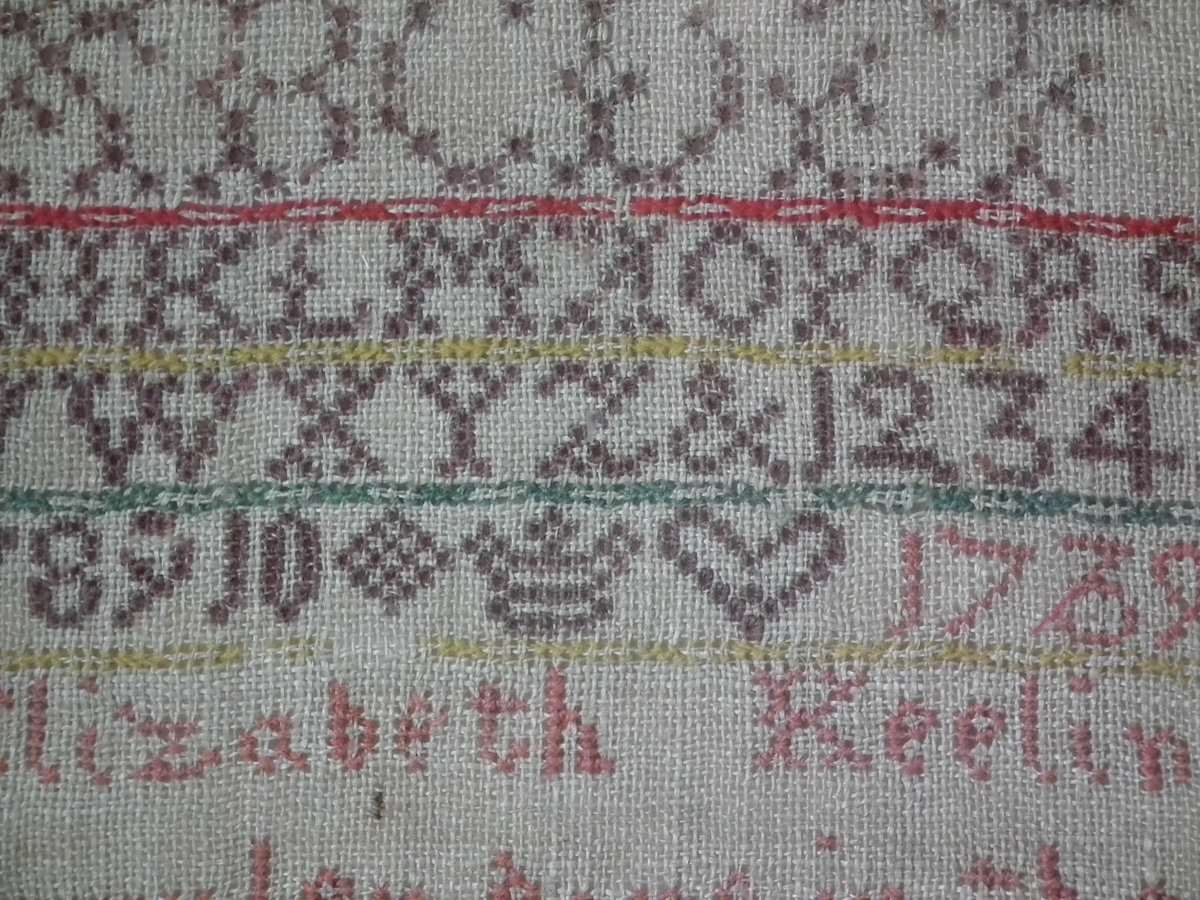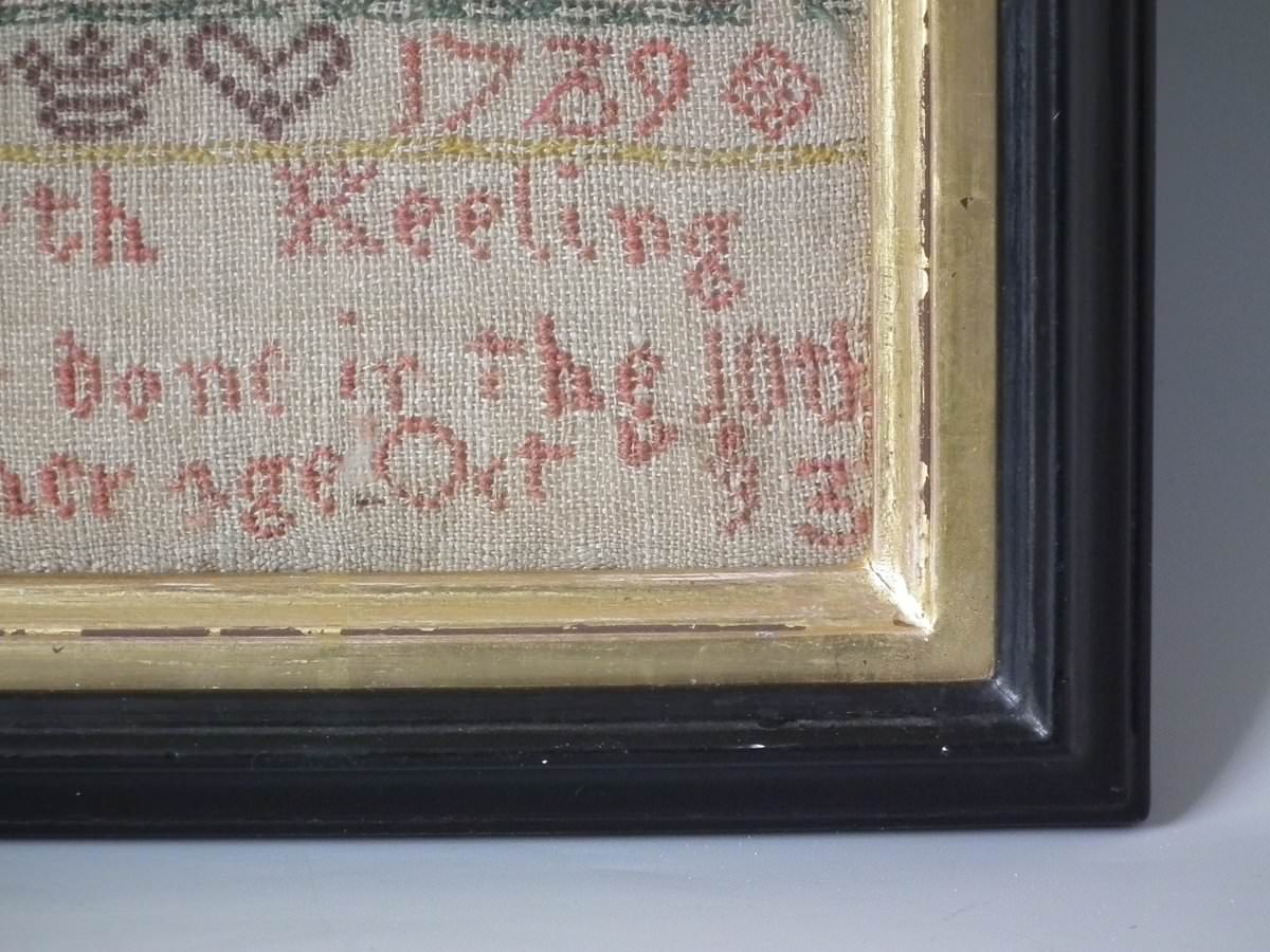 Signed and dated, '1739 Elizabeth Keeling Sampler done in the 10th year of her Age Oct 13'.