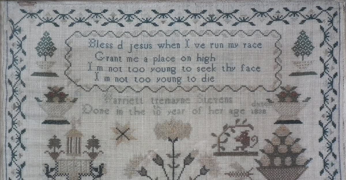 'Harriett Tremayne Stevens Done in the 10th year of her age 1838'.