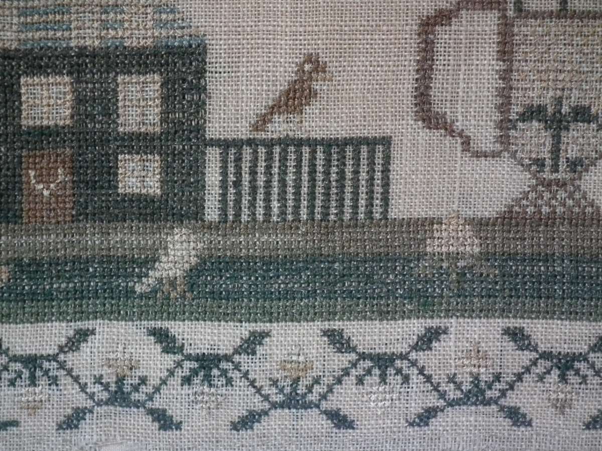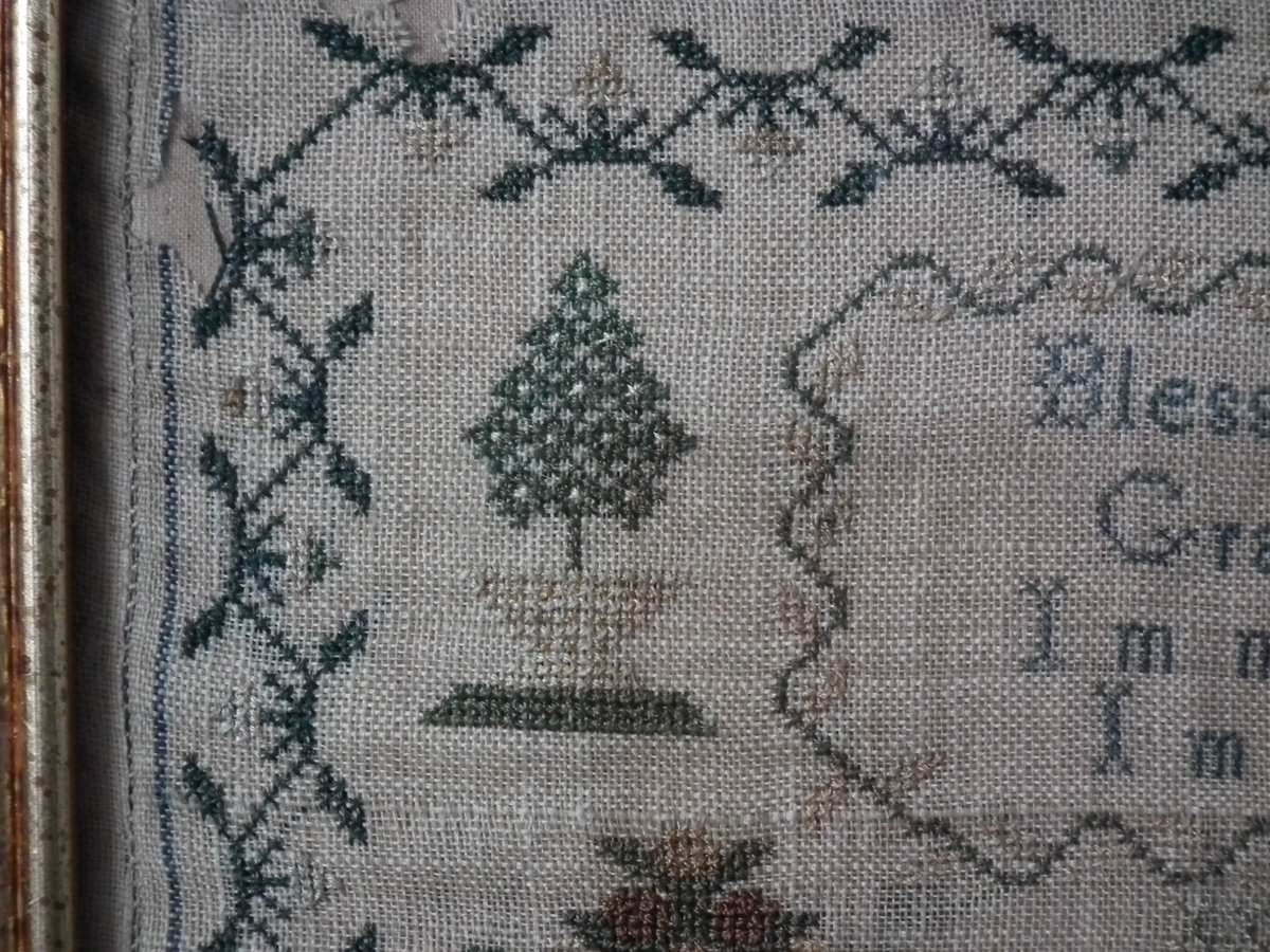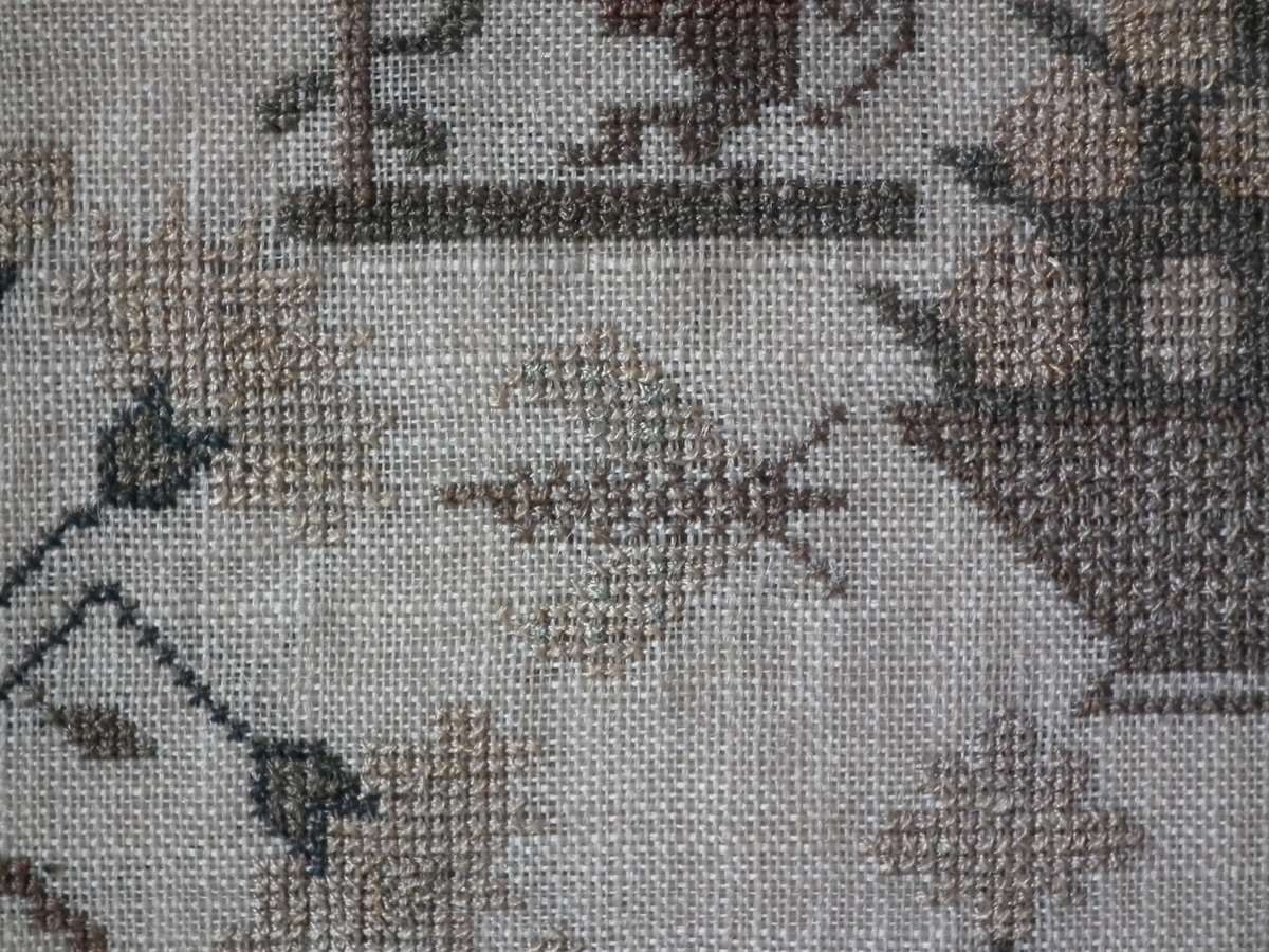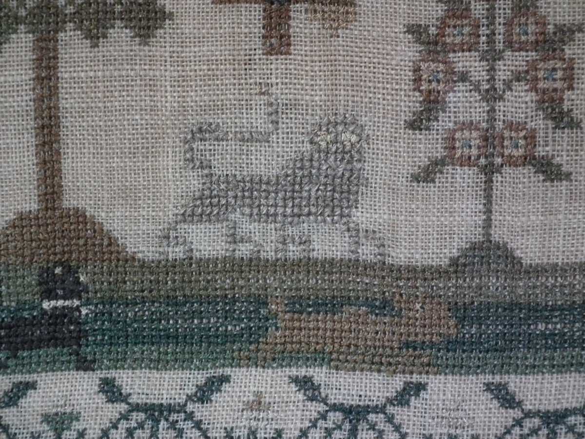 The sampler is worked in silk on linen ground.