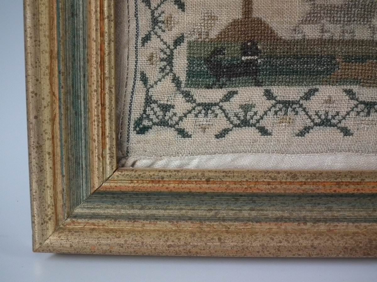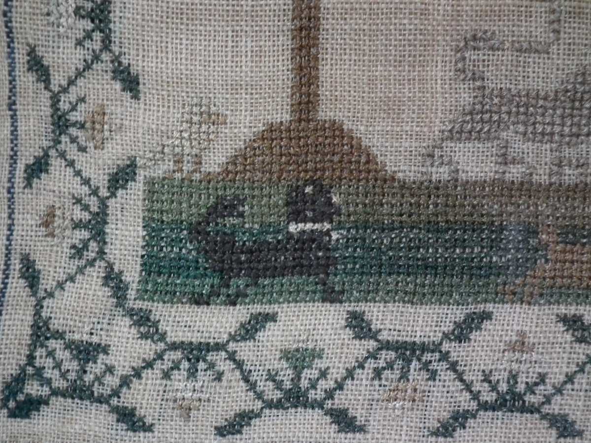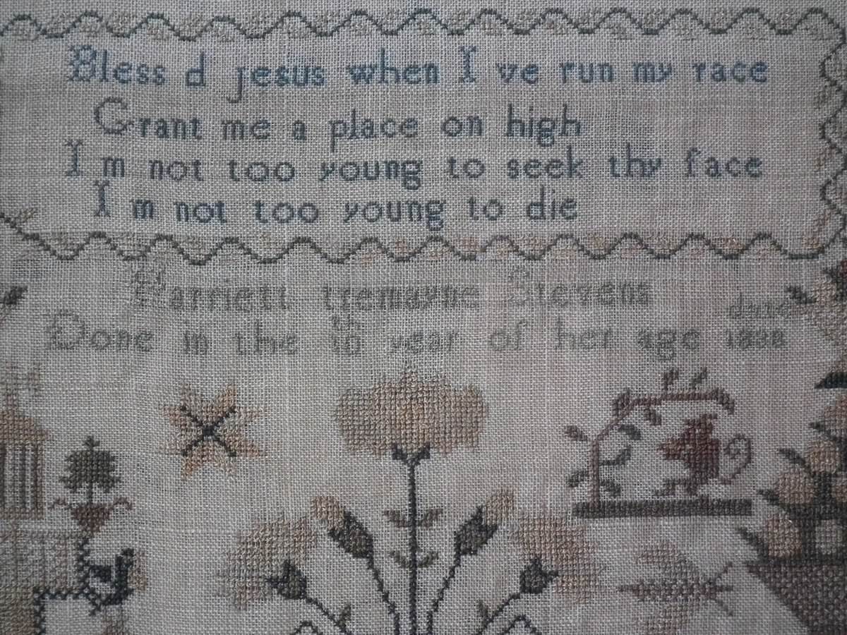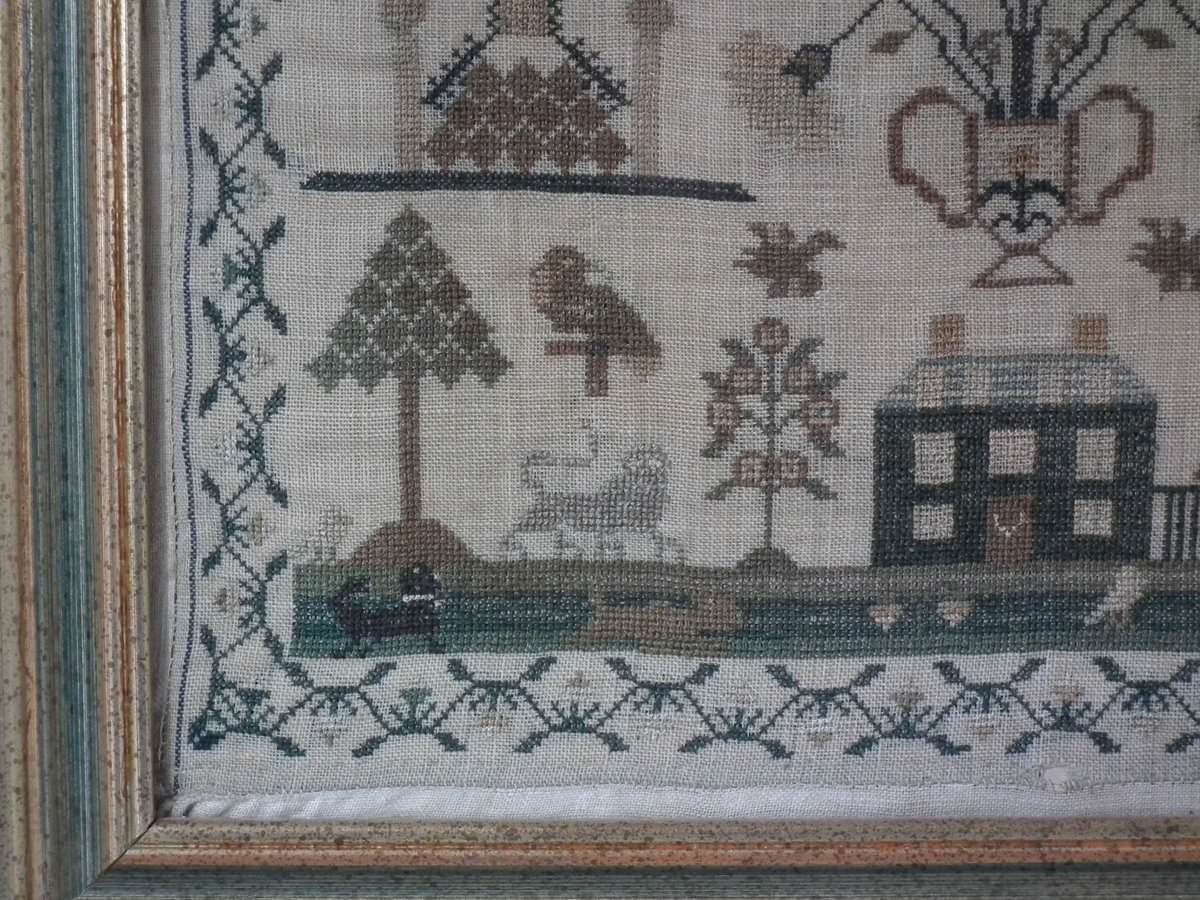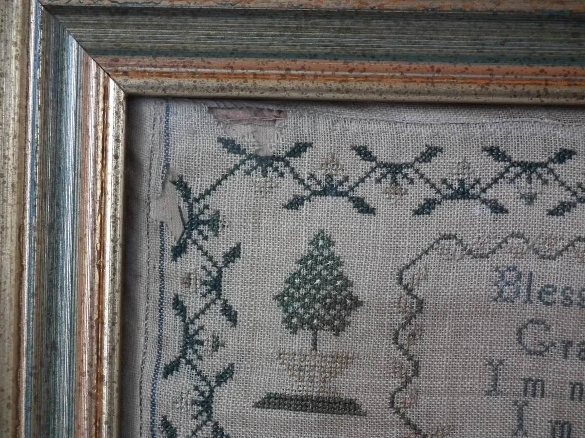 The sampler is worked in silk on linen ground.