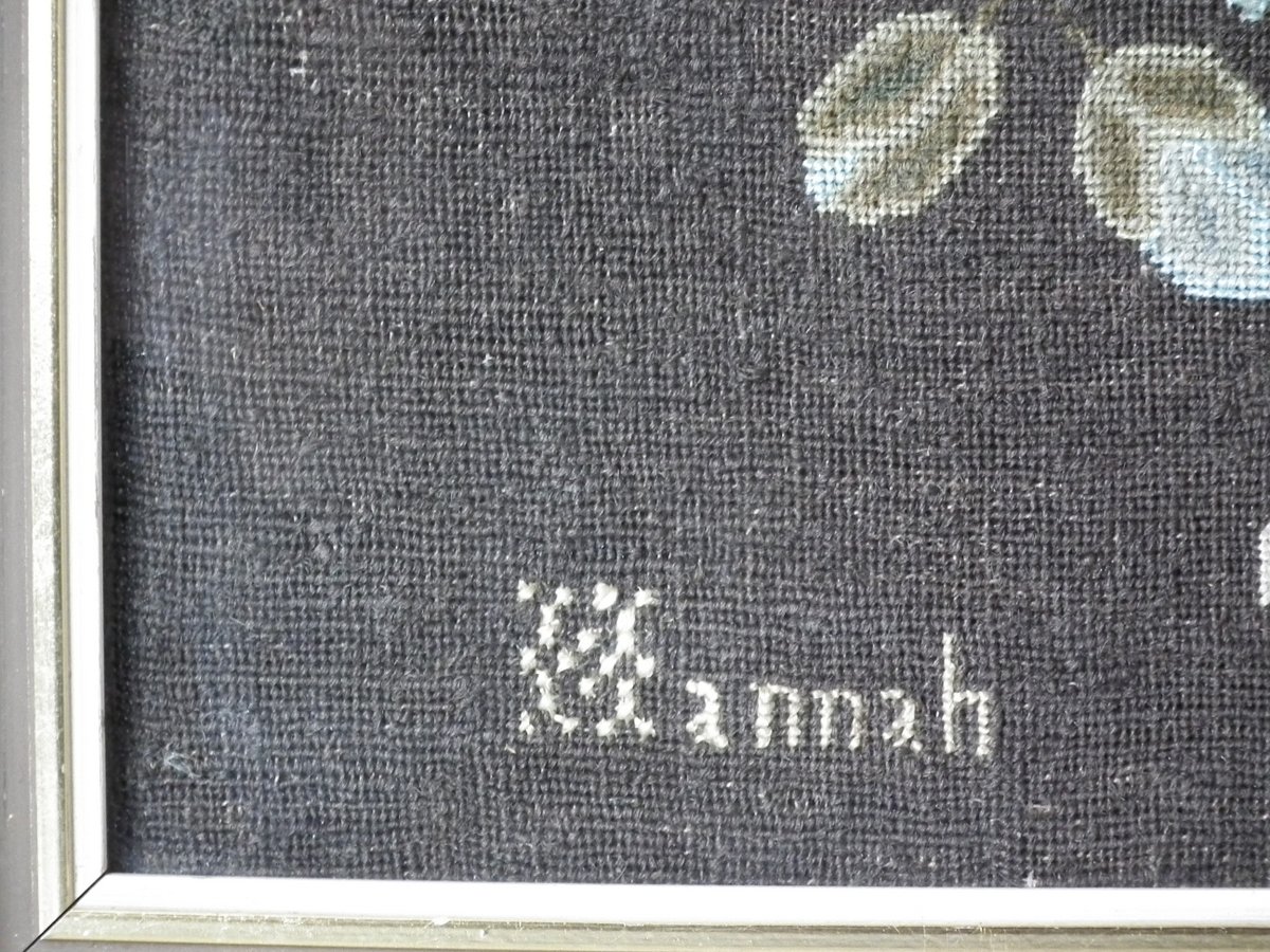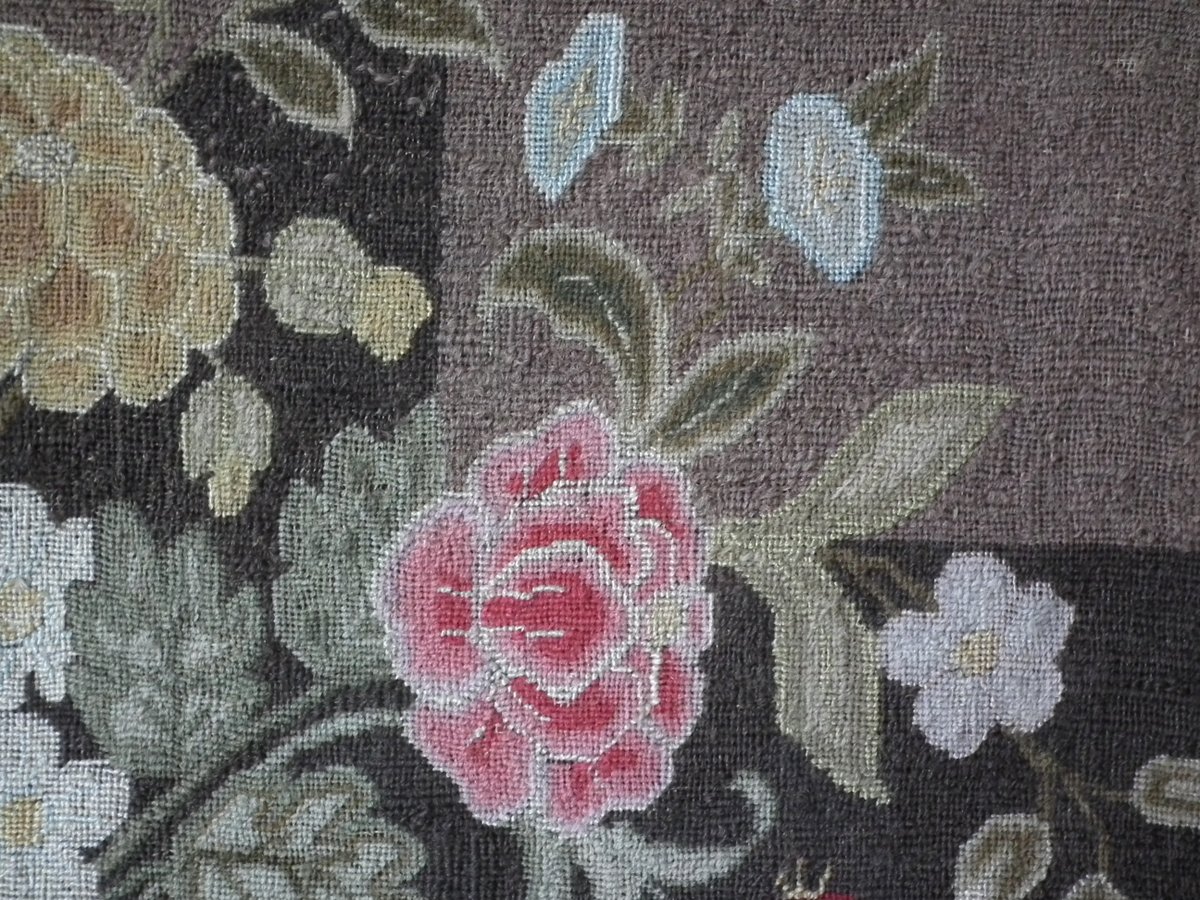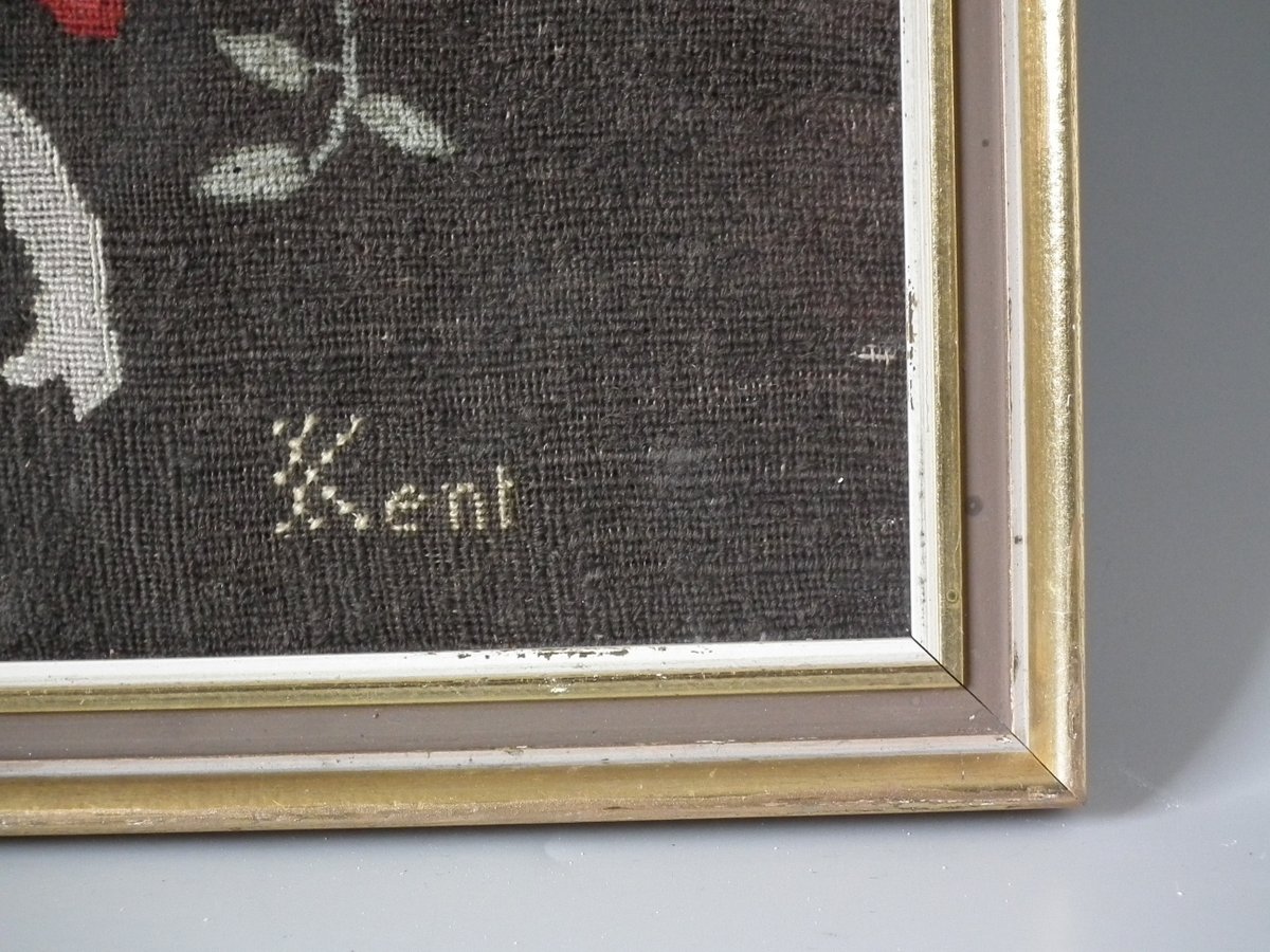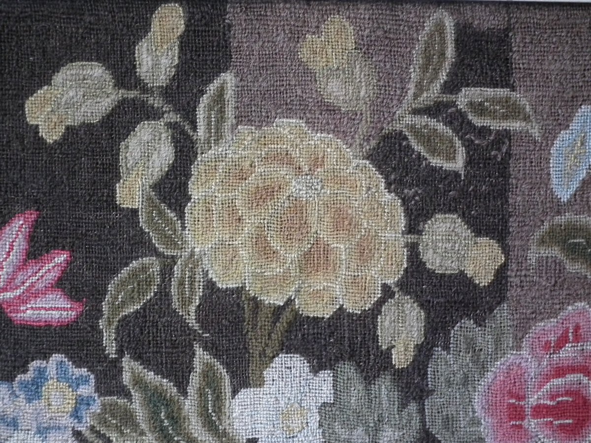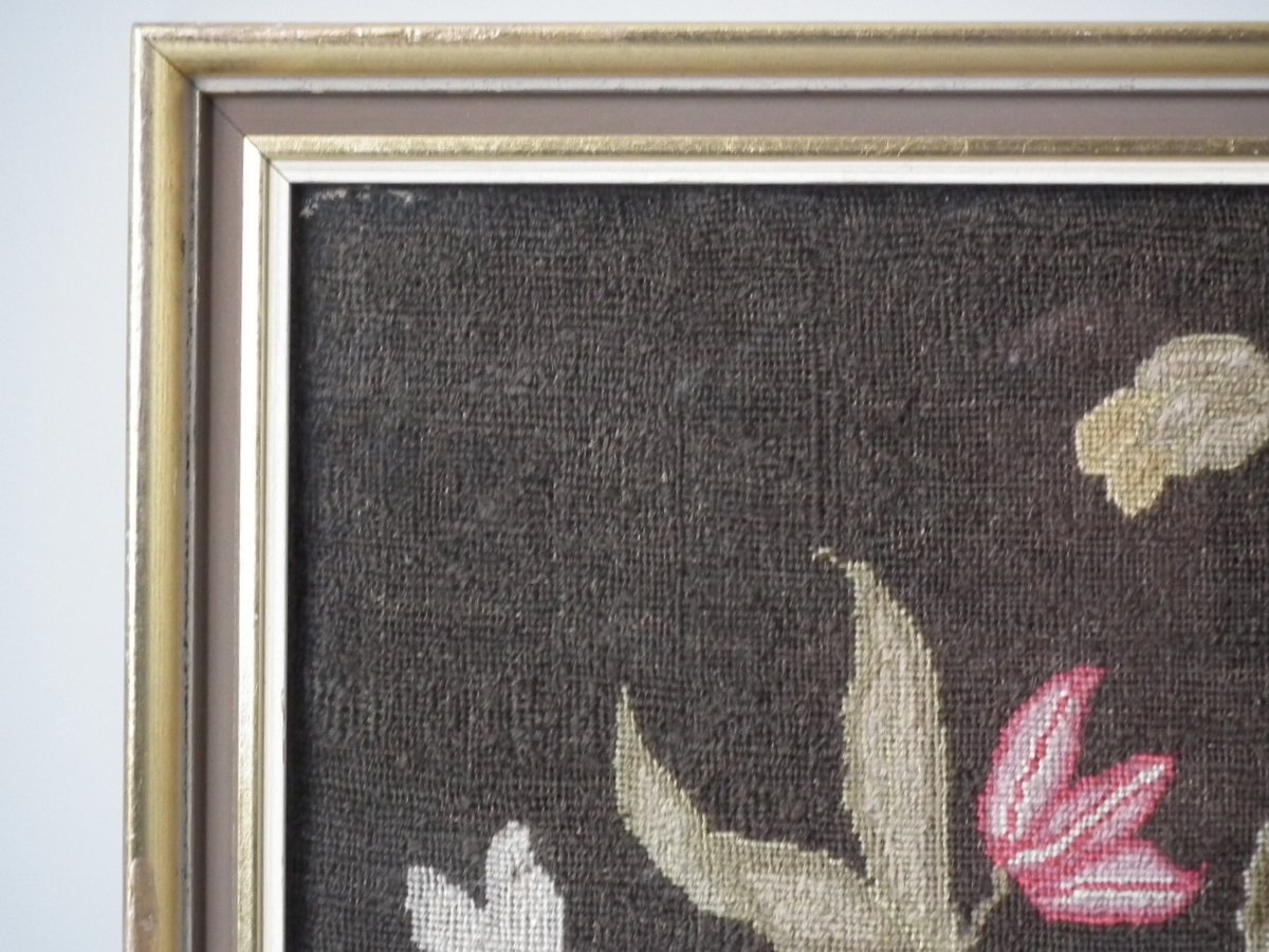George III, dated 1777. 12.2ins high, 15.4ins wide, 0.8ins deep. 1777 Floral Bouquet Embroidery by Hannah Kent.