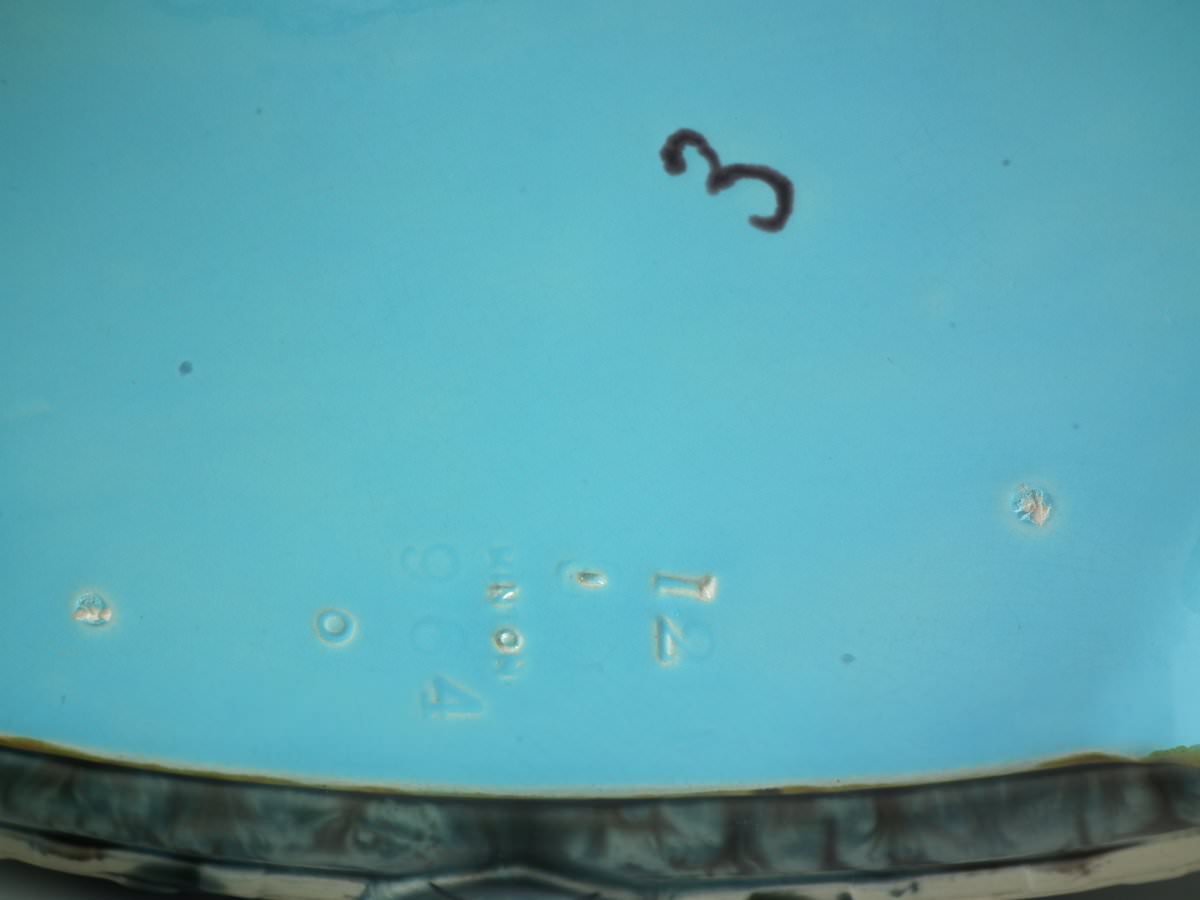 The piece bears maker's marks for the Minton pottery. Bears a pattern number, '964'.