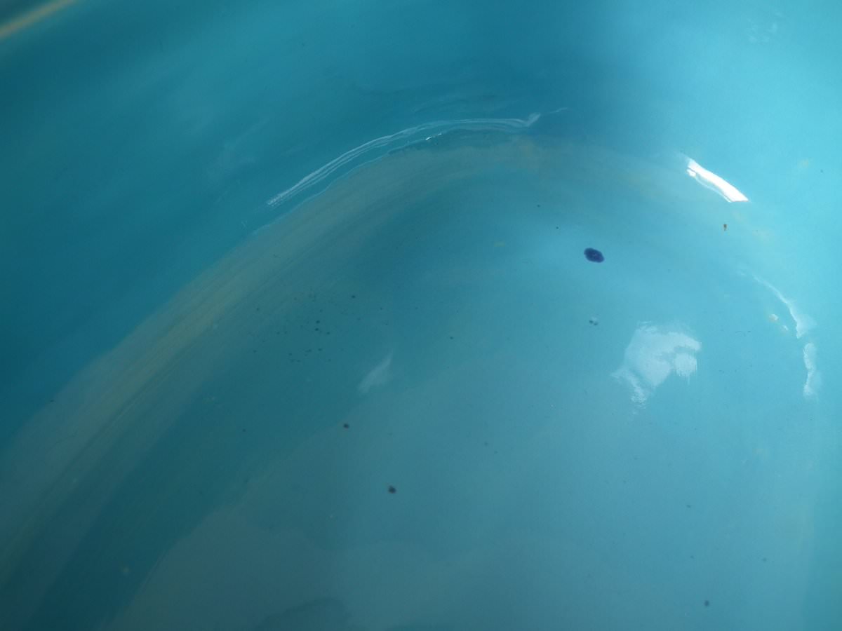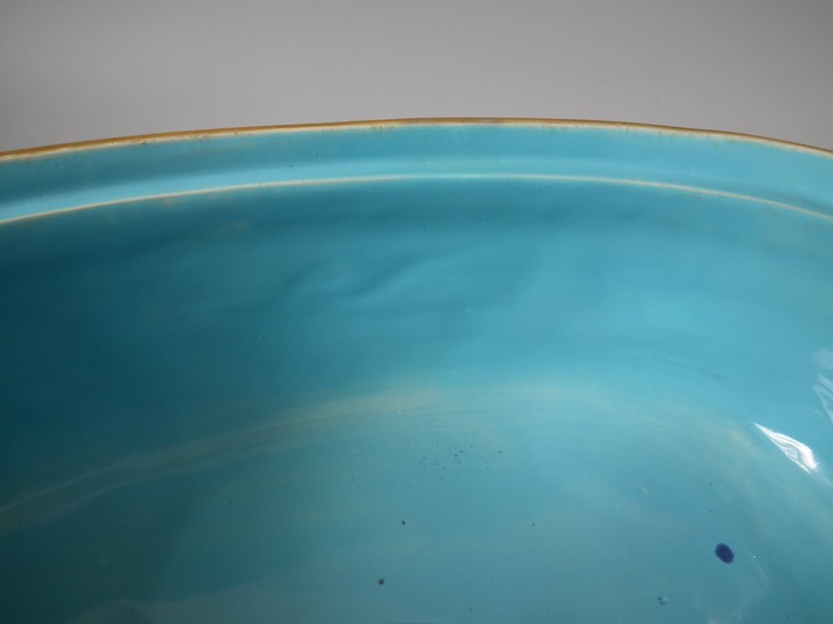 KILN EFFECTS: flecks of stray coloured glaze to the interior.