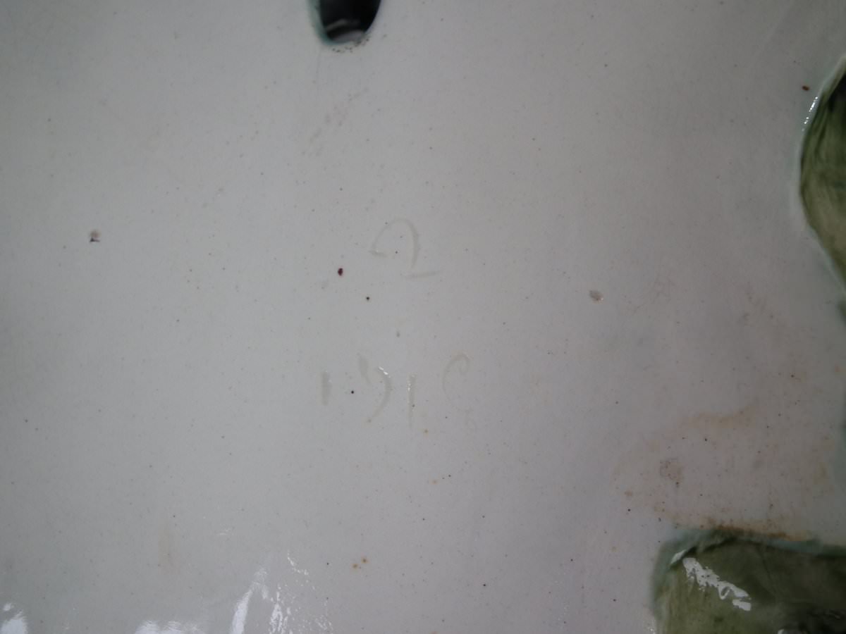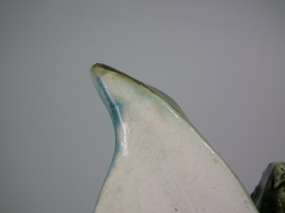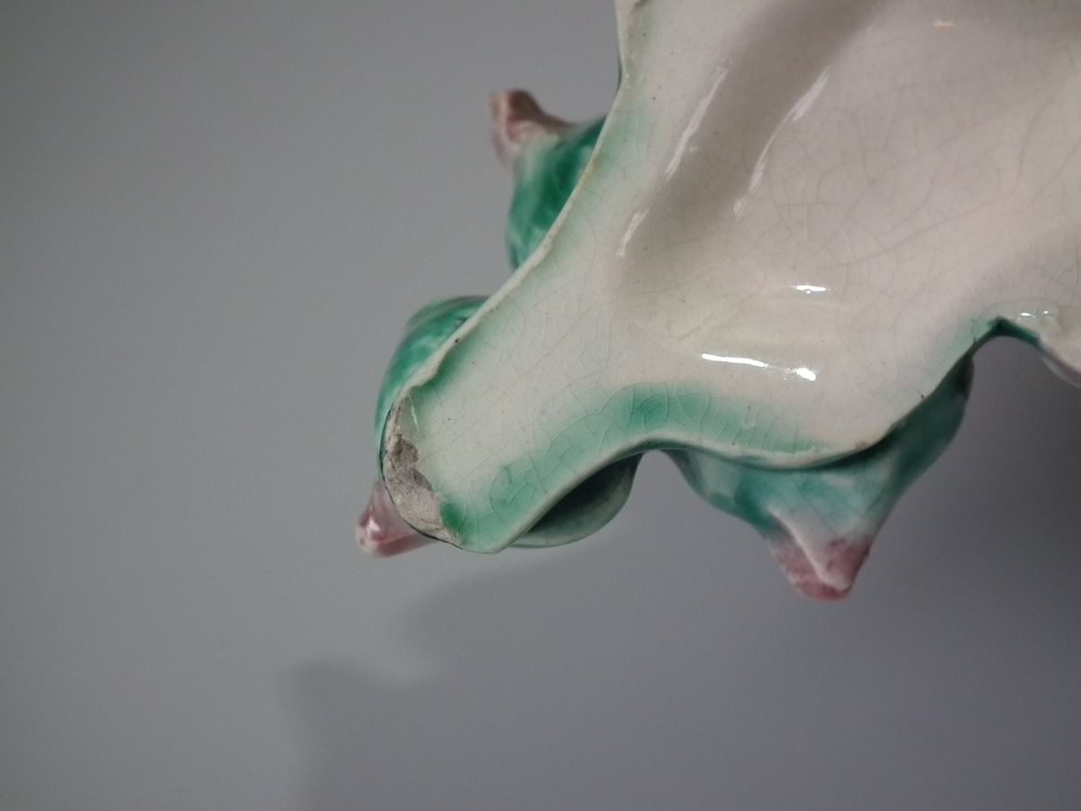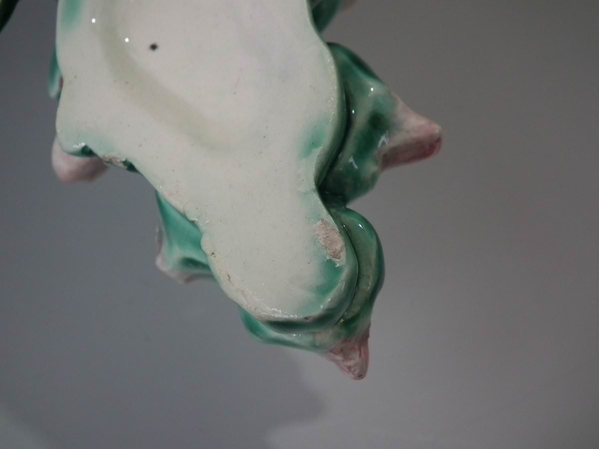 Victorian, circa 1870. Tallest is 16.1ins high, 8.7ins wide, 5.1ins depth. Pair of Majolica wall pockets which feature Hollyhock flowers and leaves.