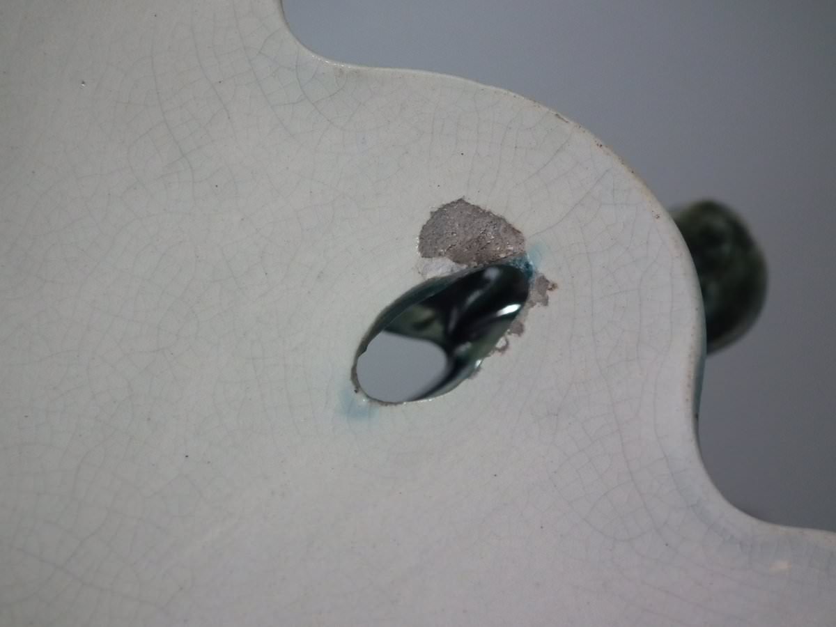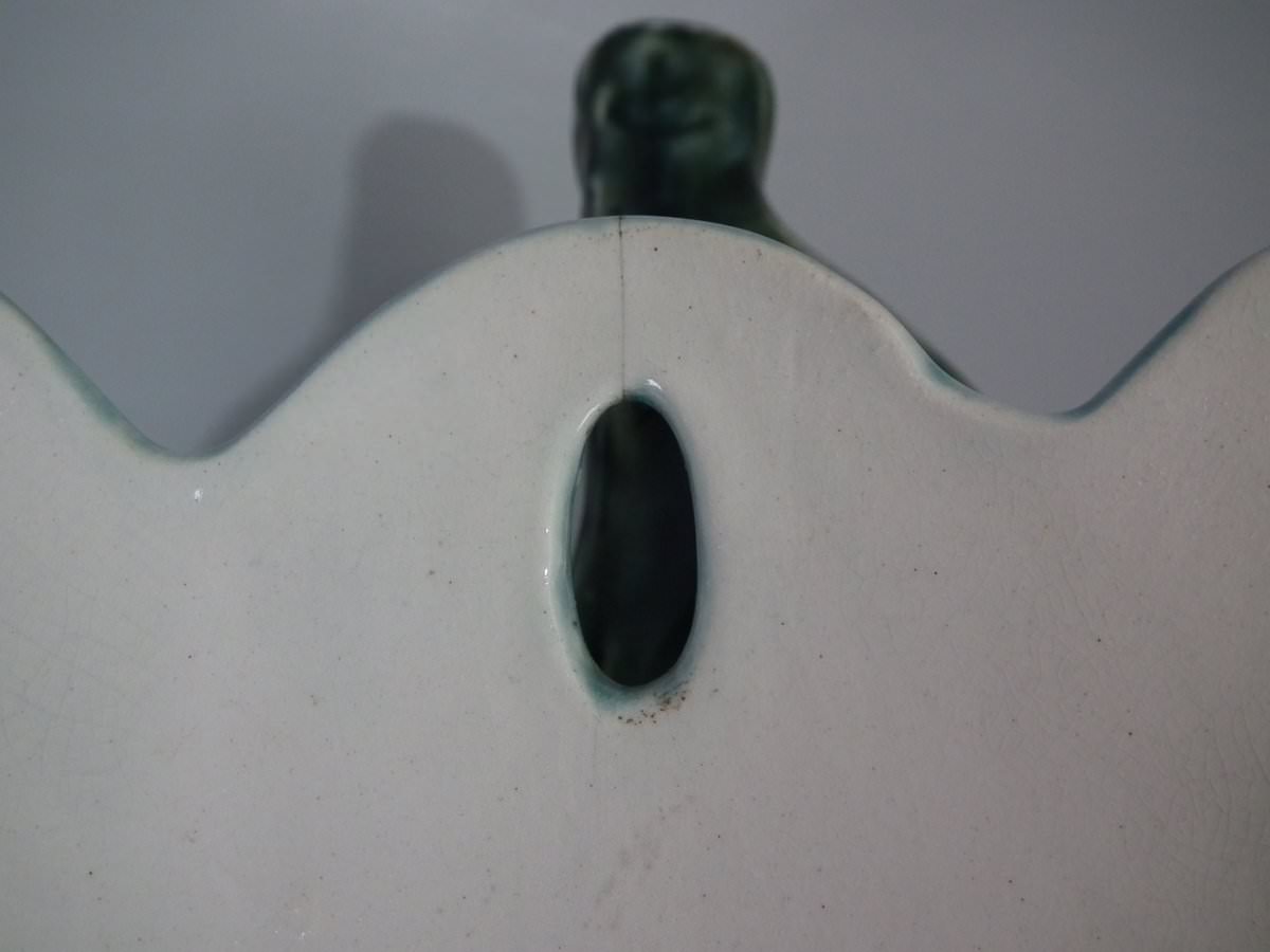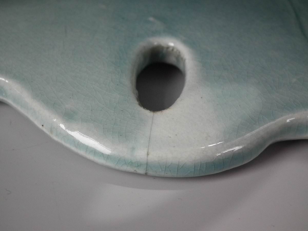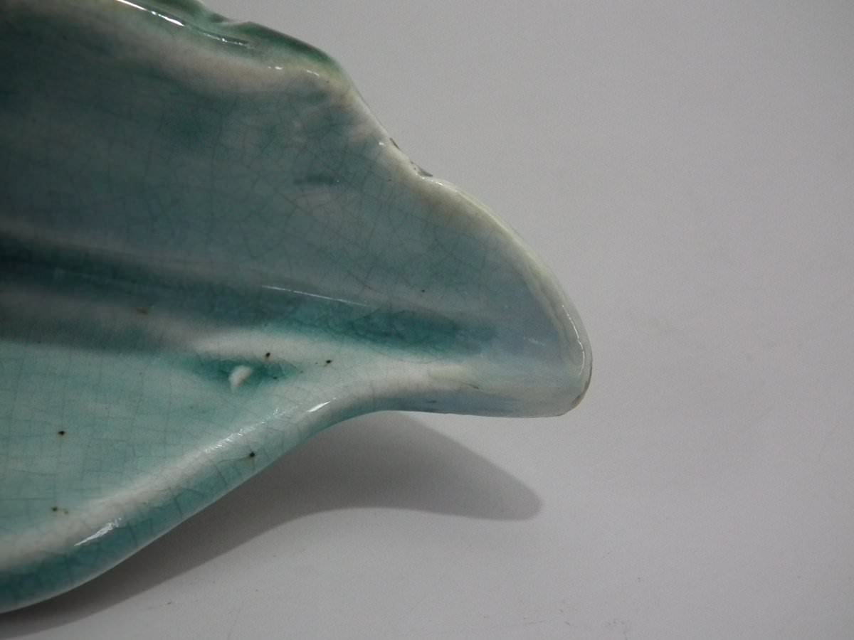Victorian, circa 1870. Tallest is 16.1ins high, 8.7ins wide, 5.1ins depth. Pair of Majolica wall pockets which feature Hollyhock flowers and leaves.