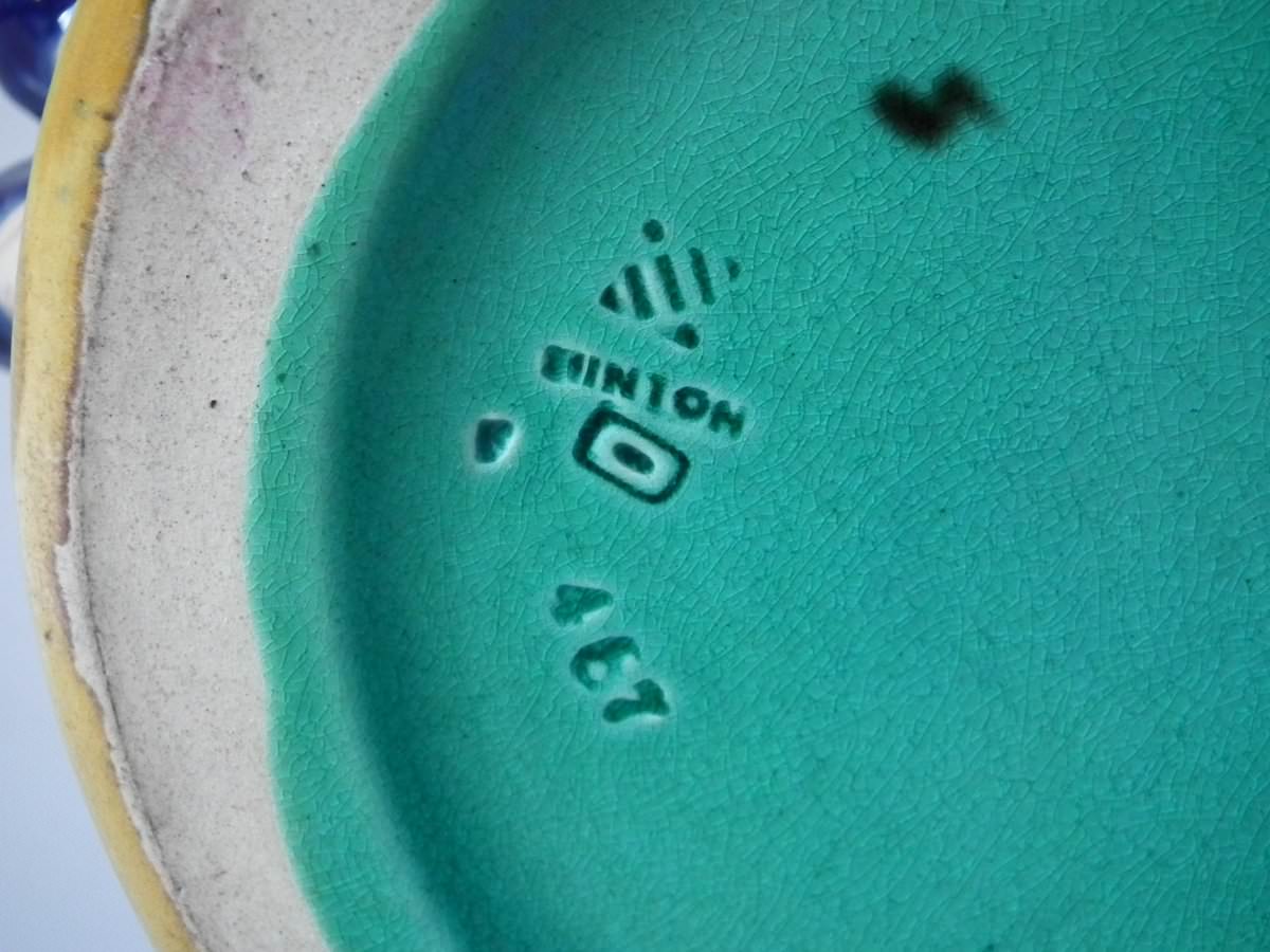 The piece bears maker's marks for the Minton pottery. Bears a pattern number, '467'. Marks include a factory specific date cipher for the year 1869.